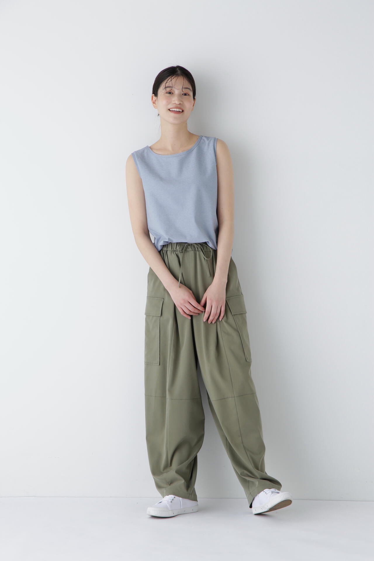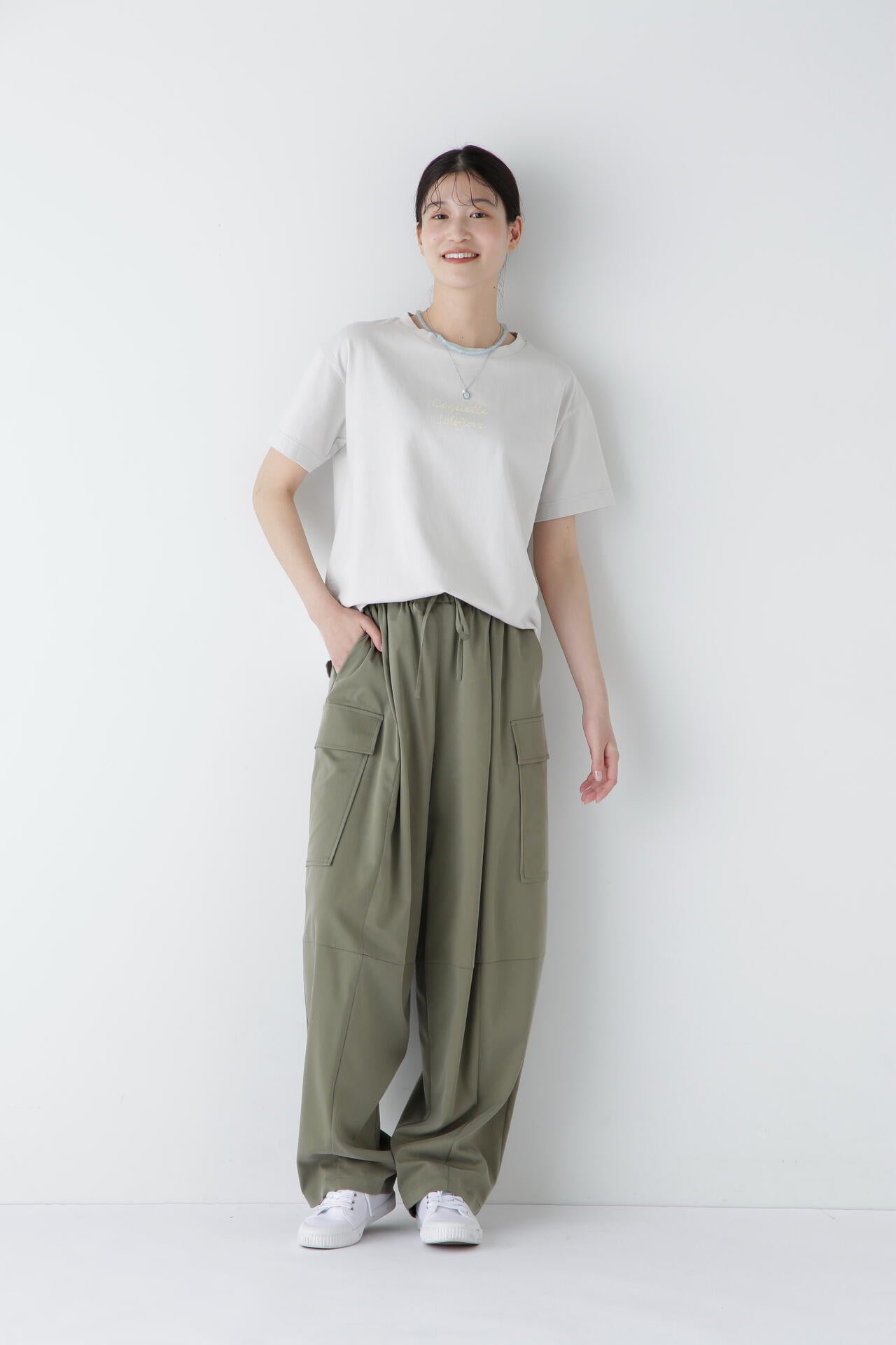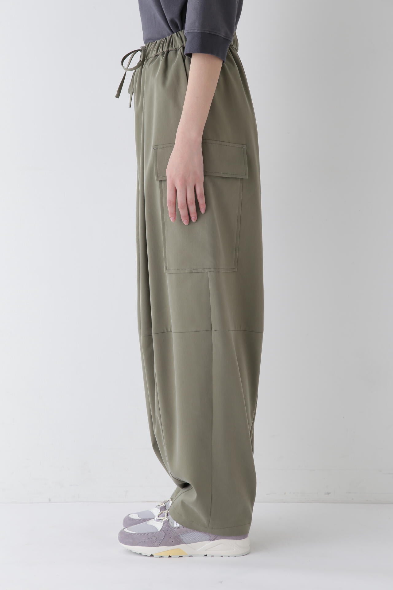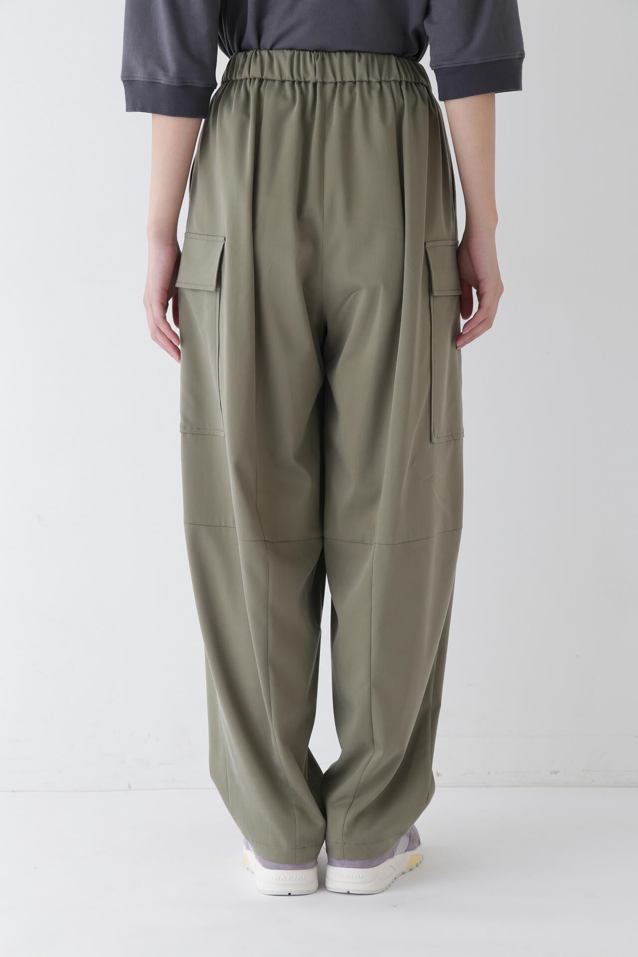 バレルシルエットにカーゴディテールを載せた新しいパンツです。素材もゆるっとしているのでイージーにこなれ感を出せる大人っぽい一枚です。