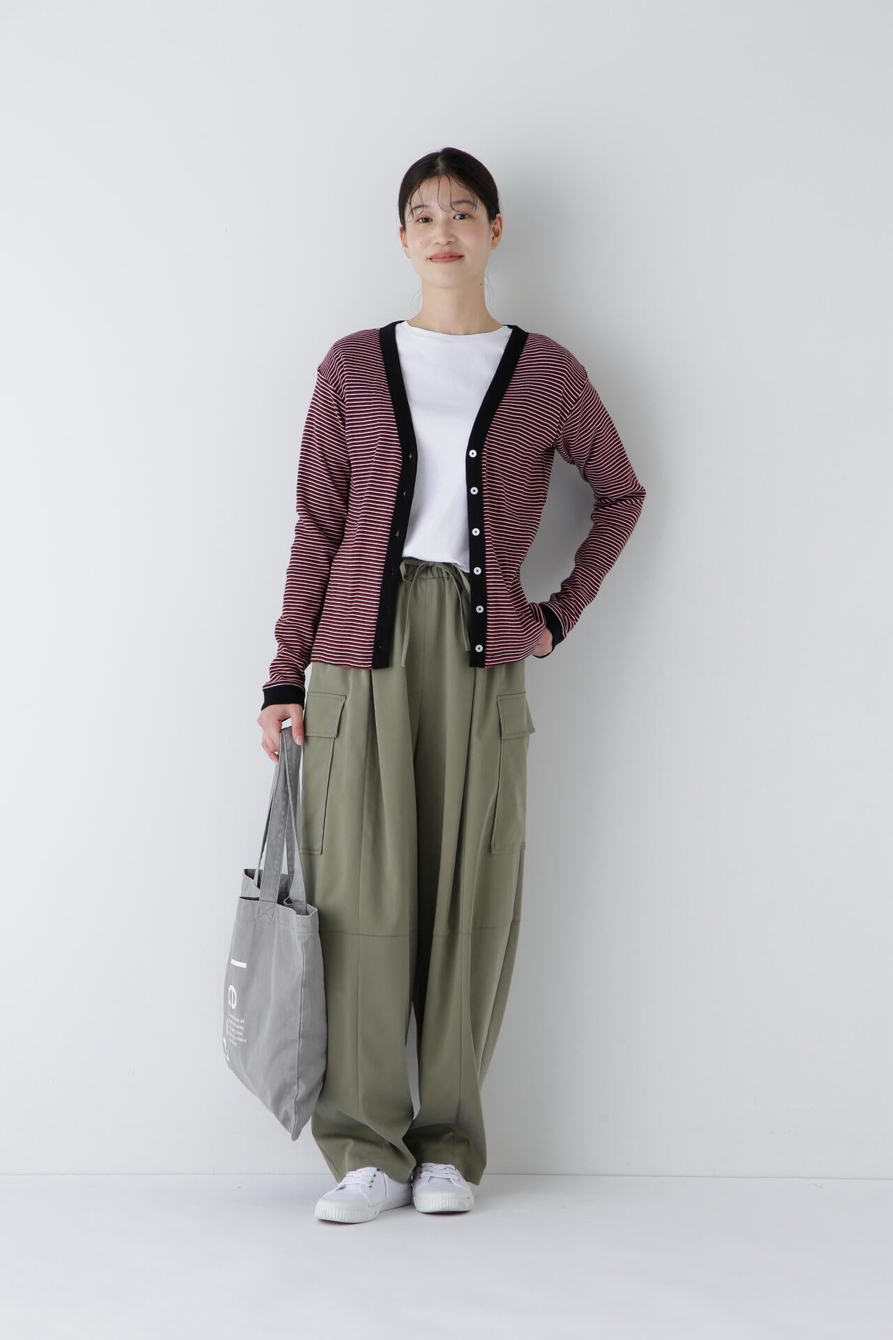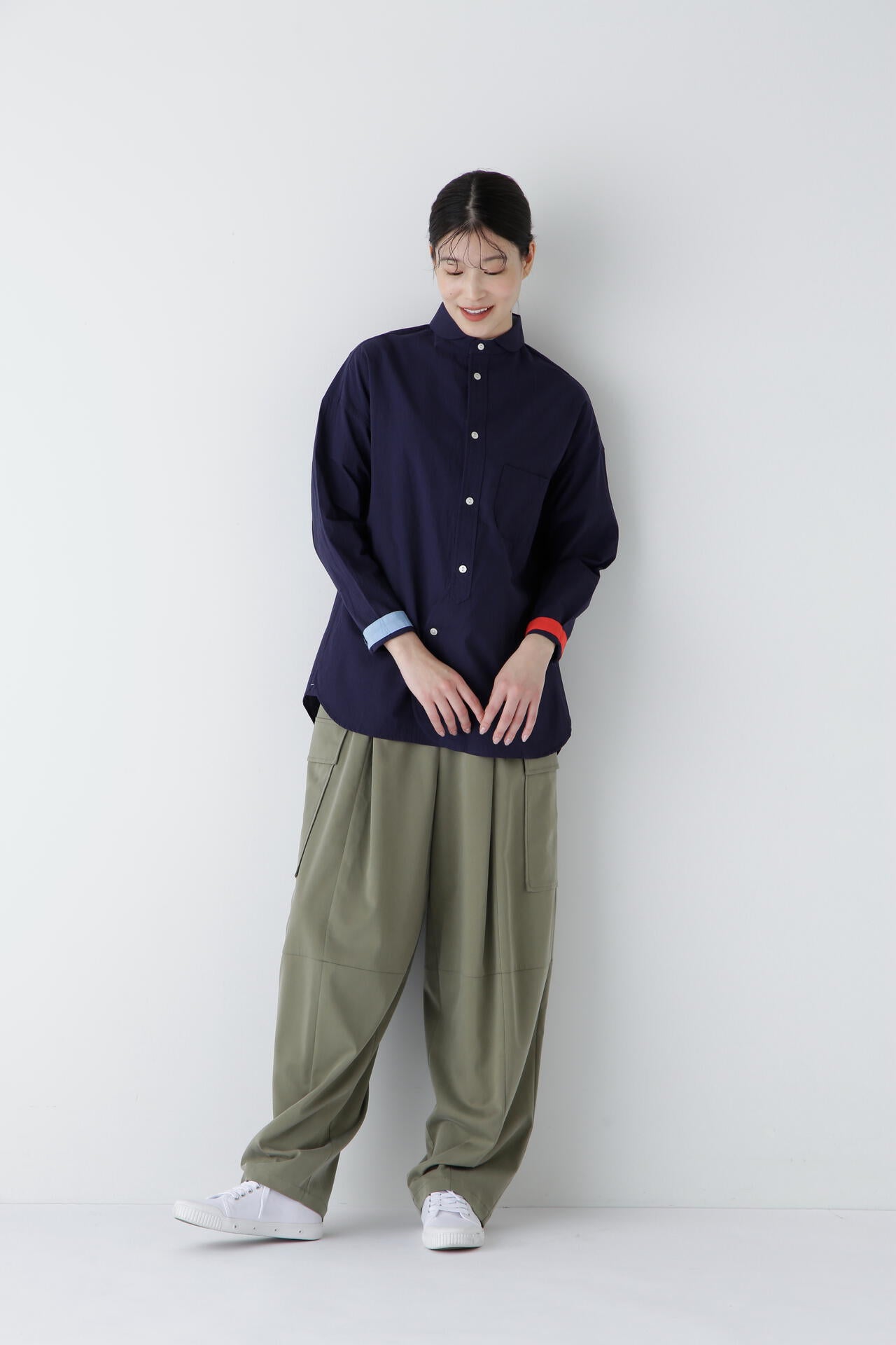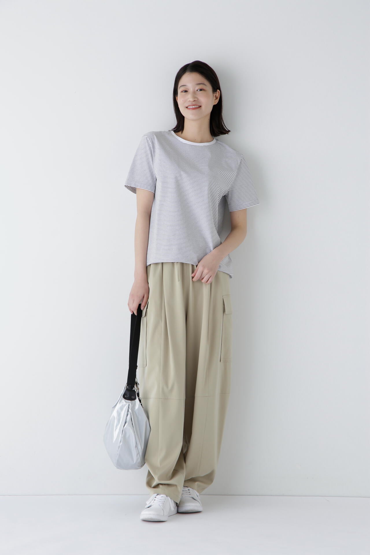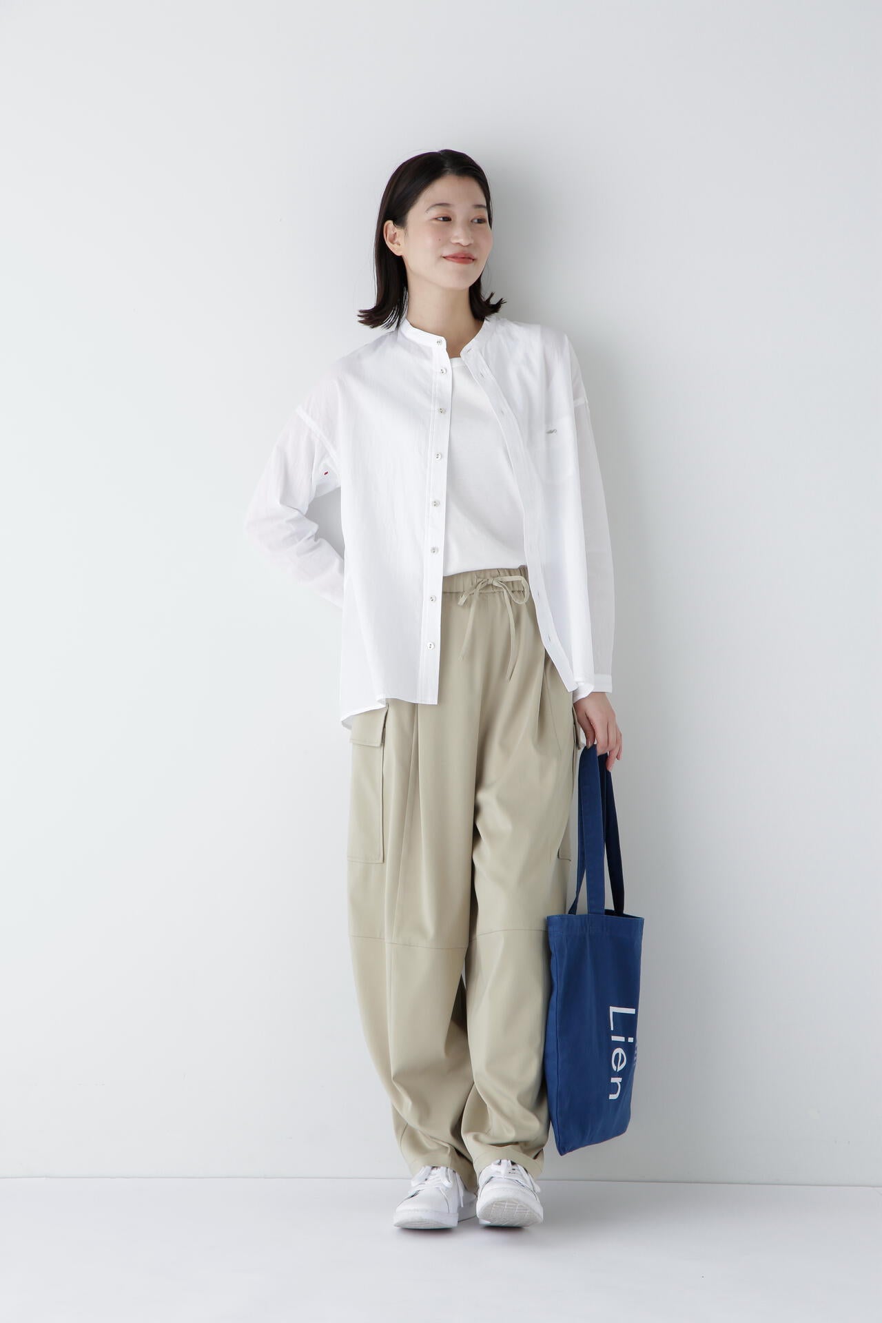 バレルシルエットにカーゴディテールを載せた新しいパンツです。素材もゆるっとしているのでイージーにこなれ感を出せる大人っぽい一枚です。