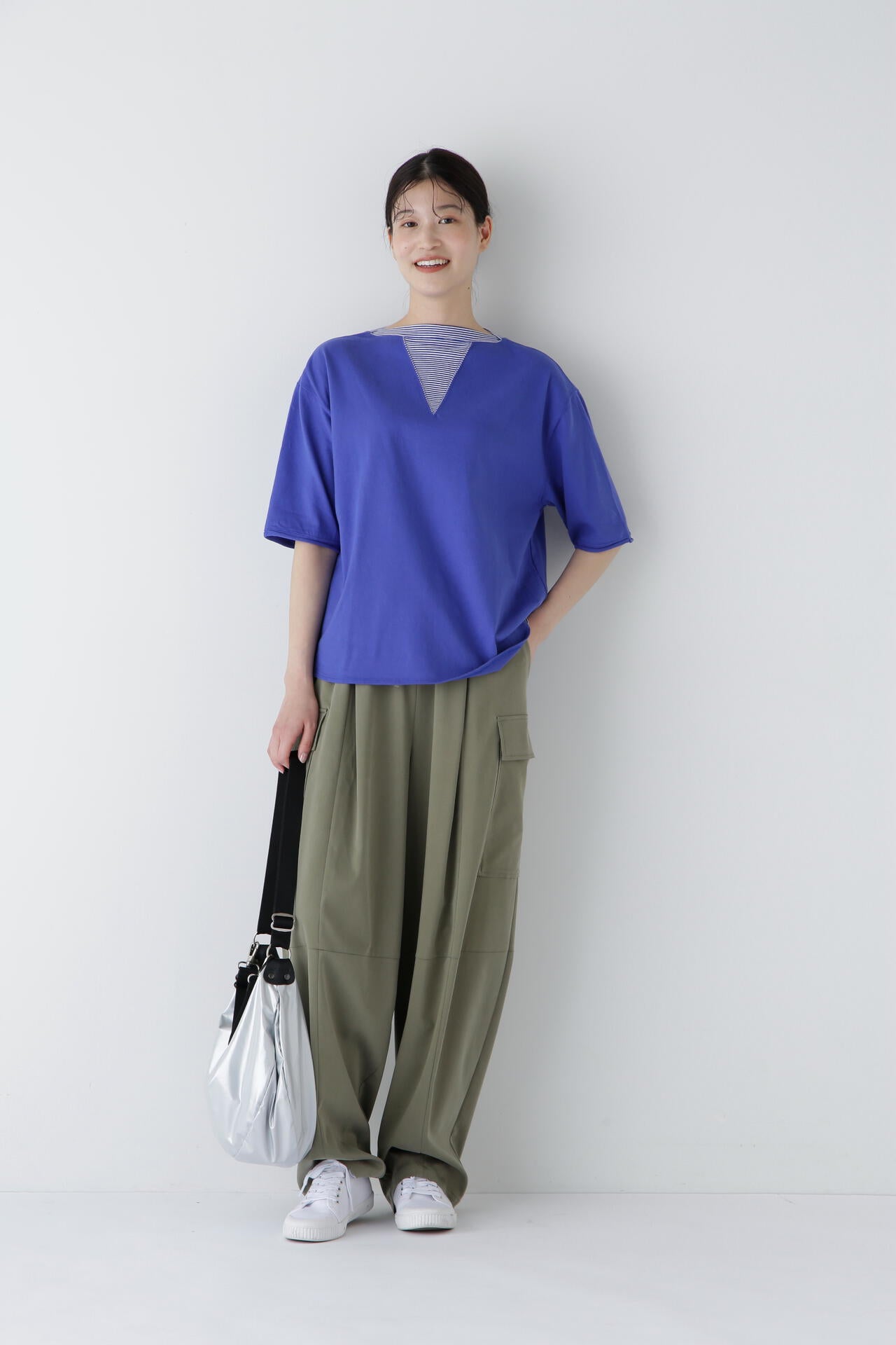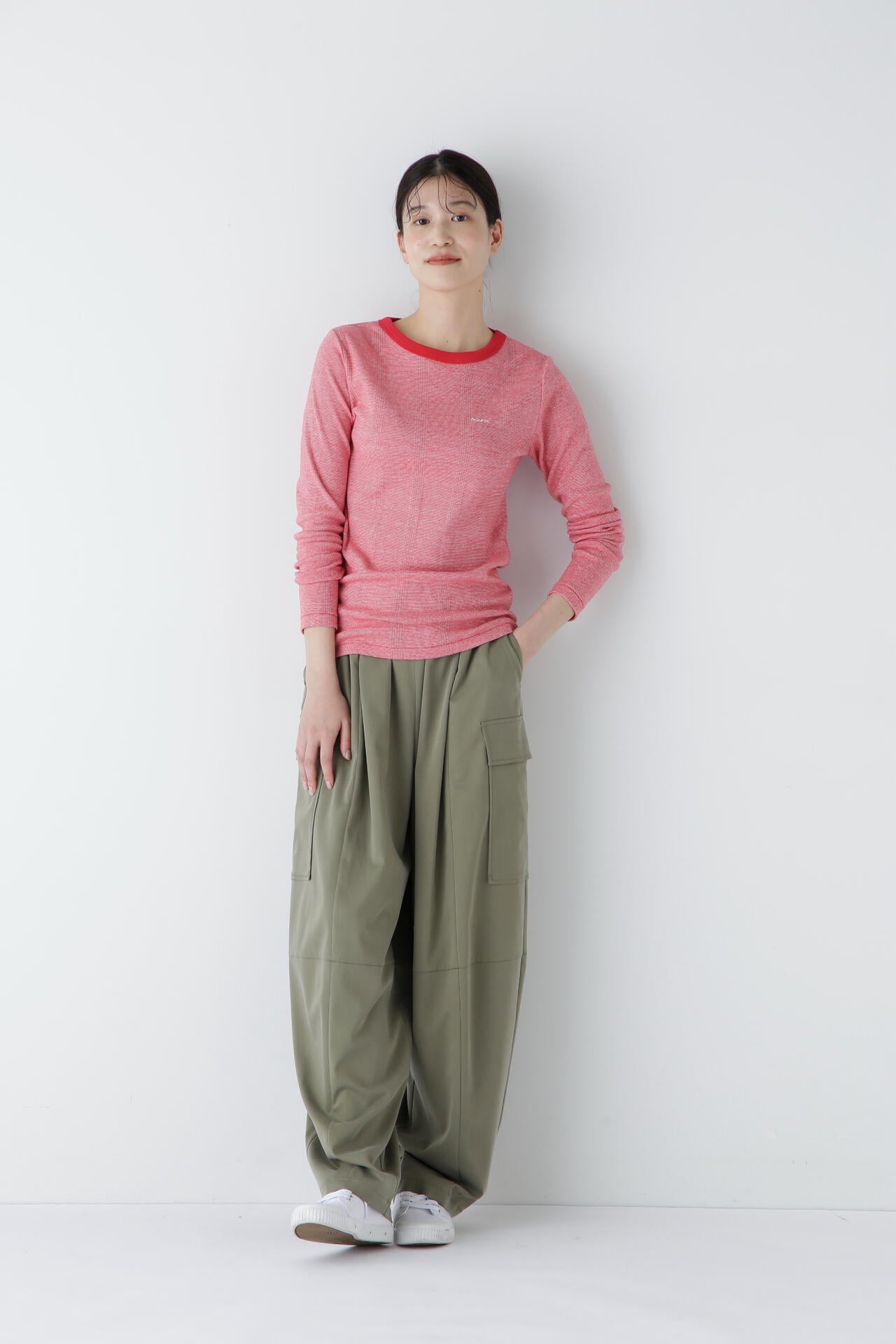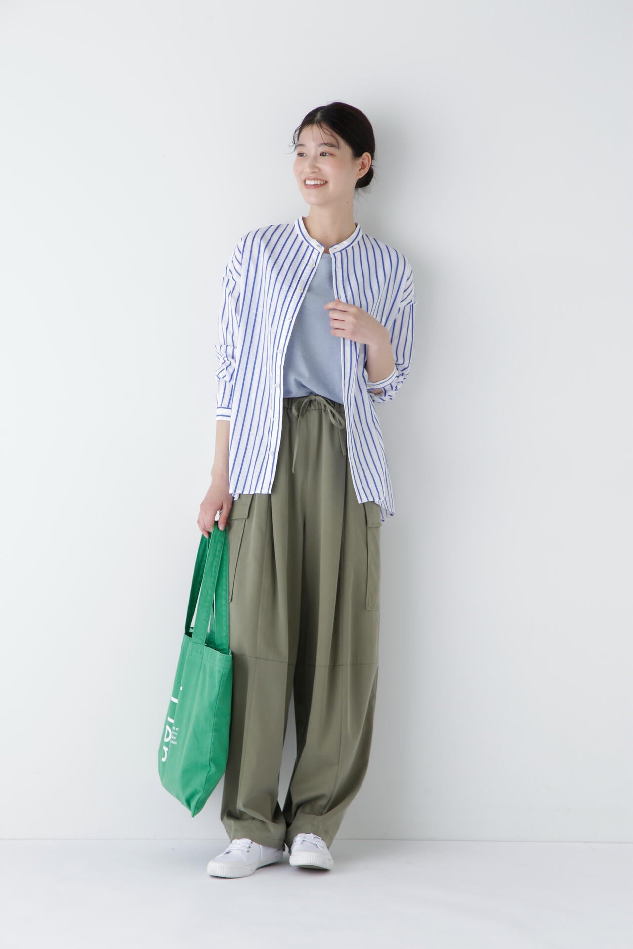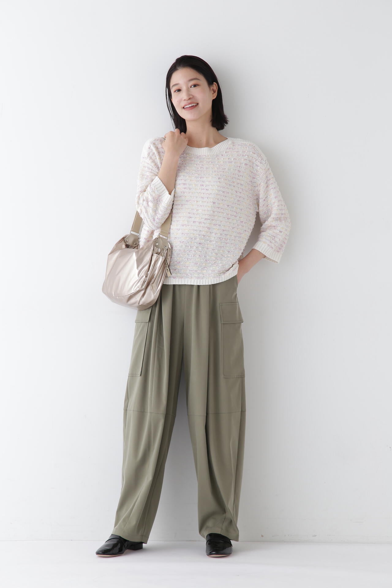 バレルシルエットにカーゴディテールを載せた新しいパンツです。素材もゆるっとしているのでイージーにこなれ感を出せる大人っぽい一枚です。