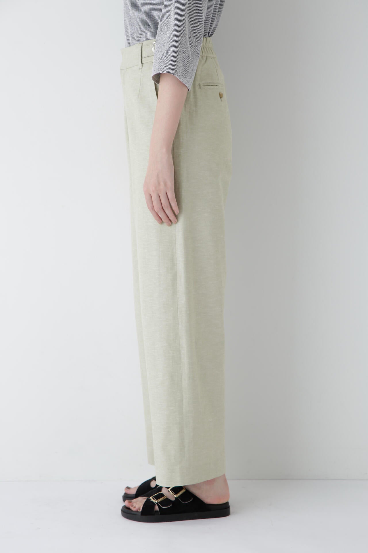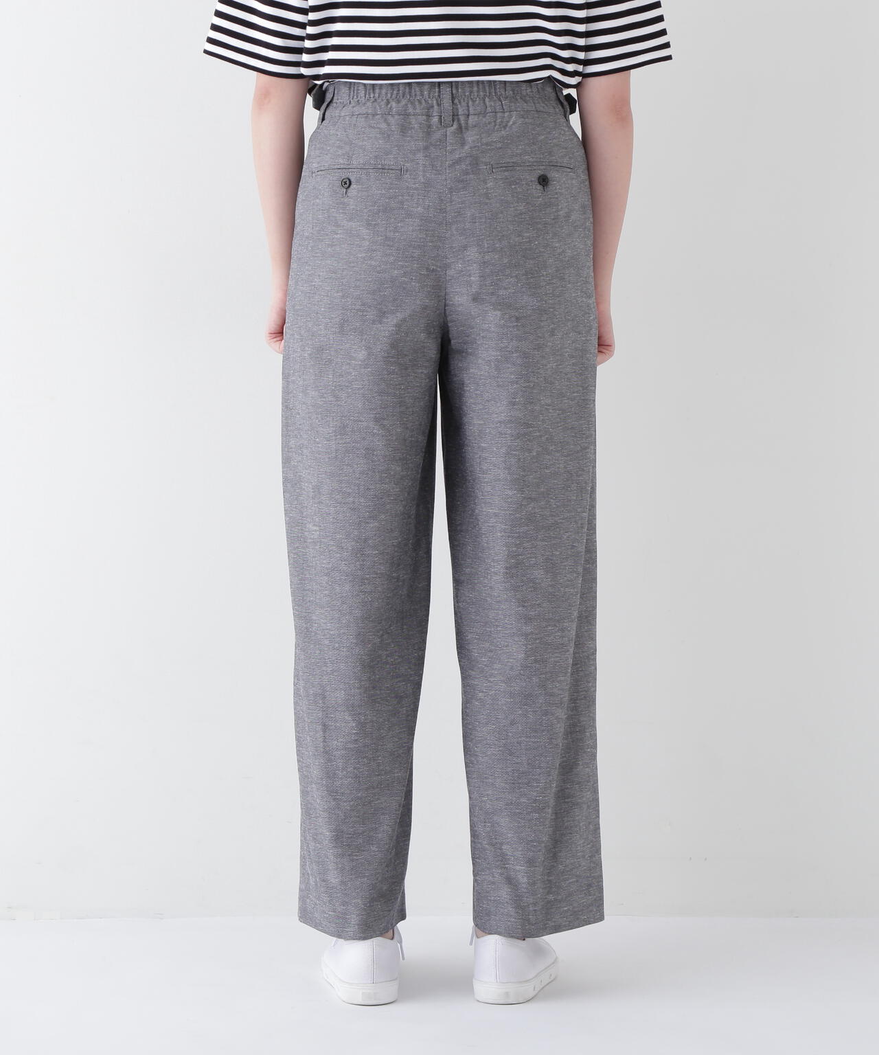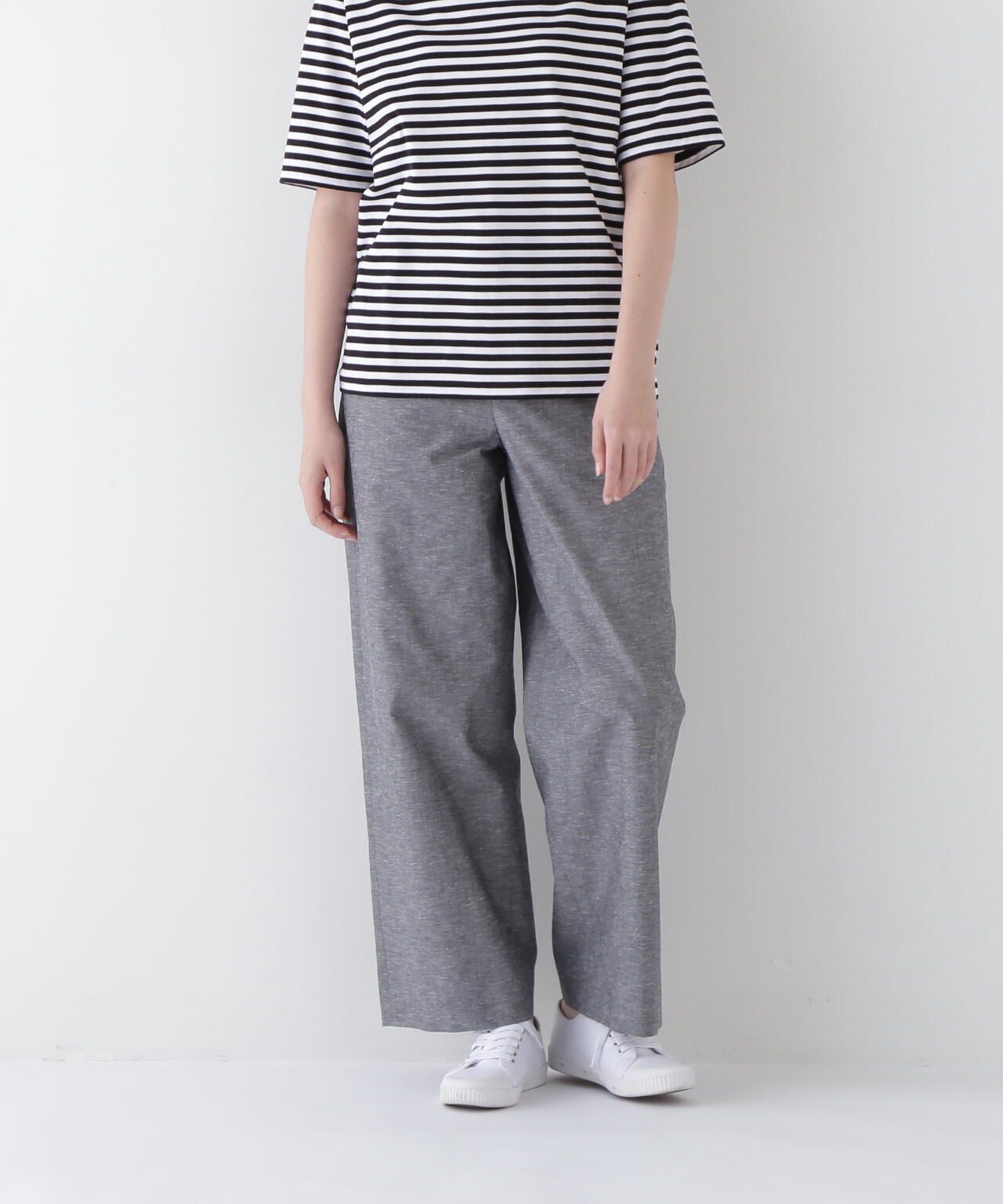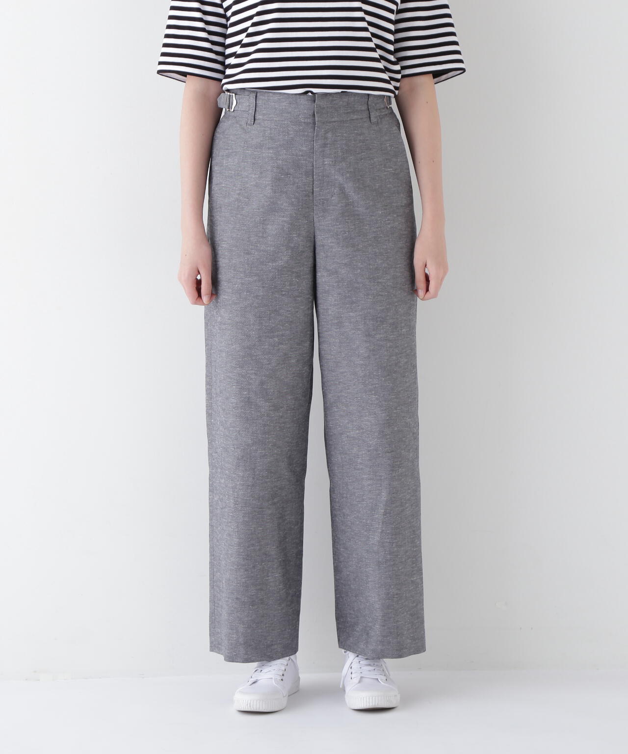 綿麻シャンブレーセミワイドパンツ