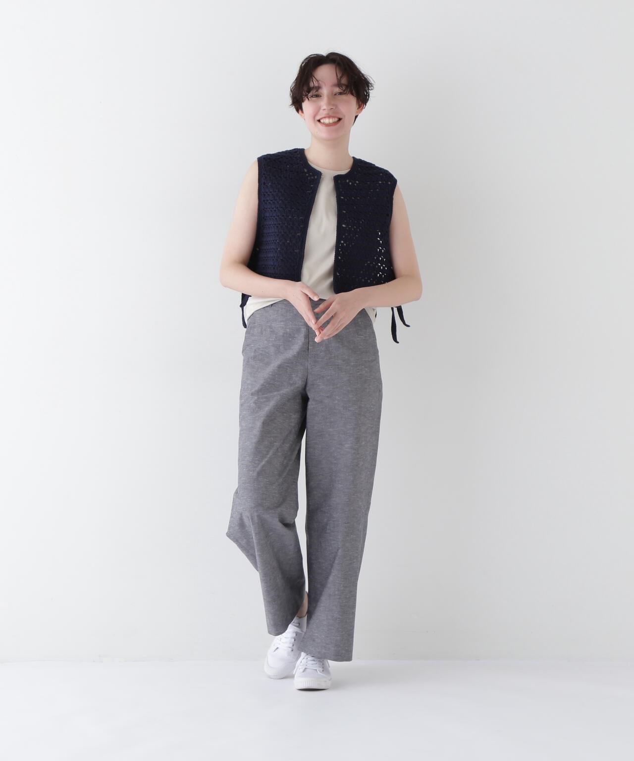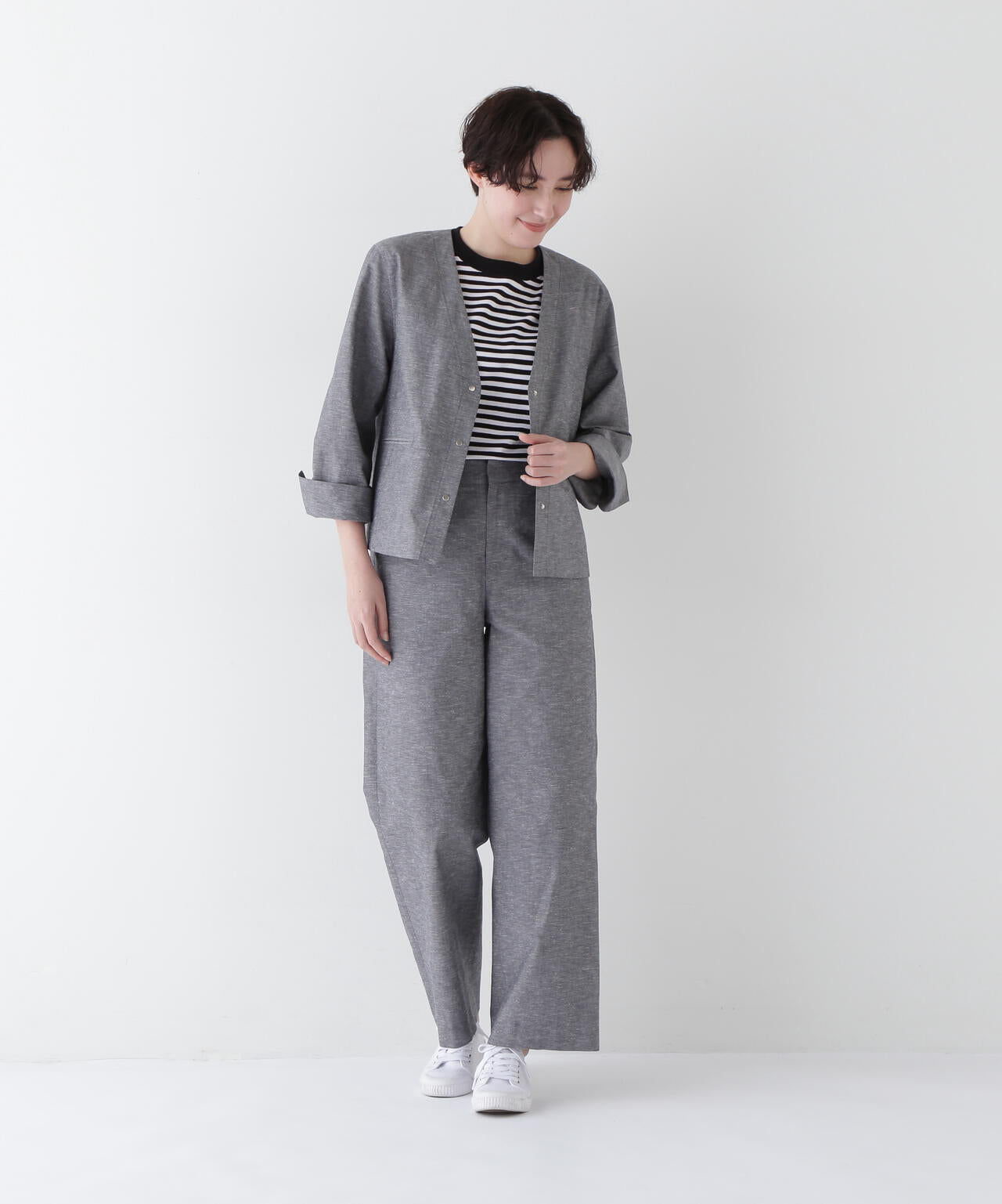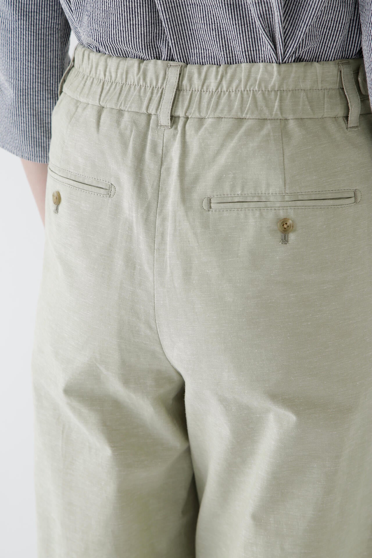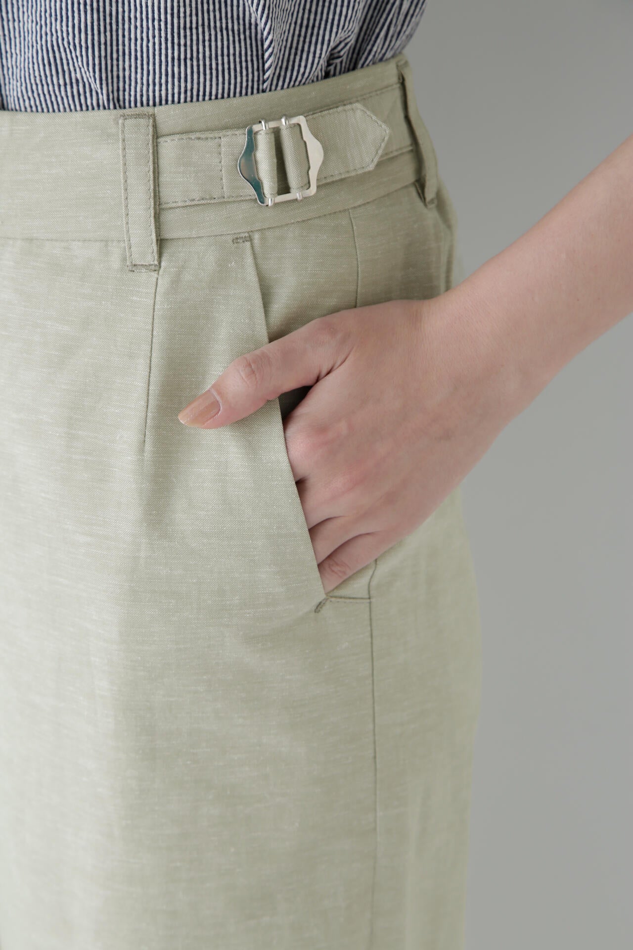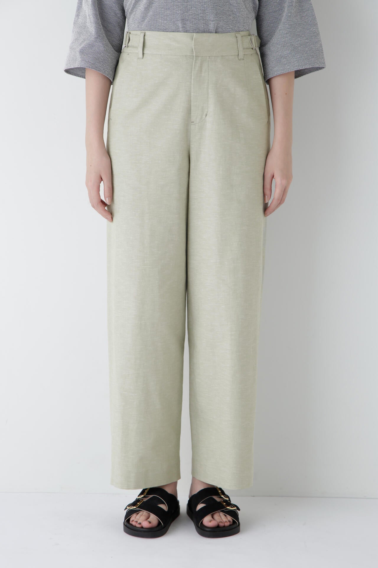 綿麻シャンブレーセミワイドパンツ