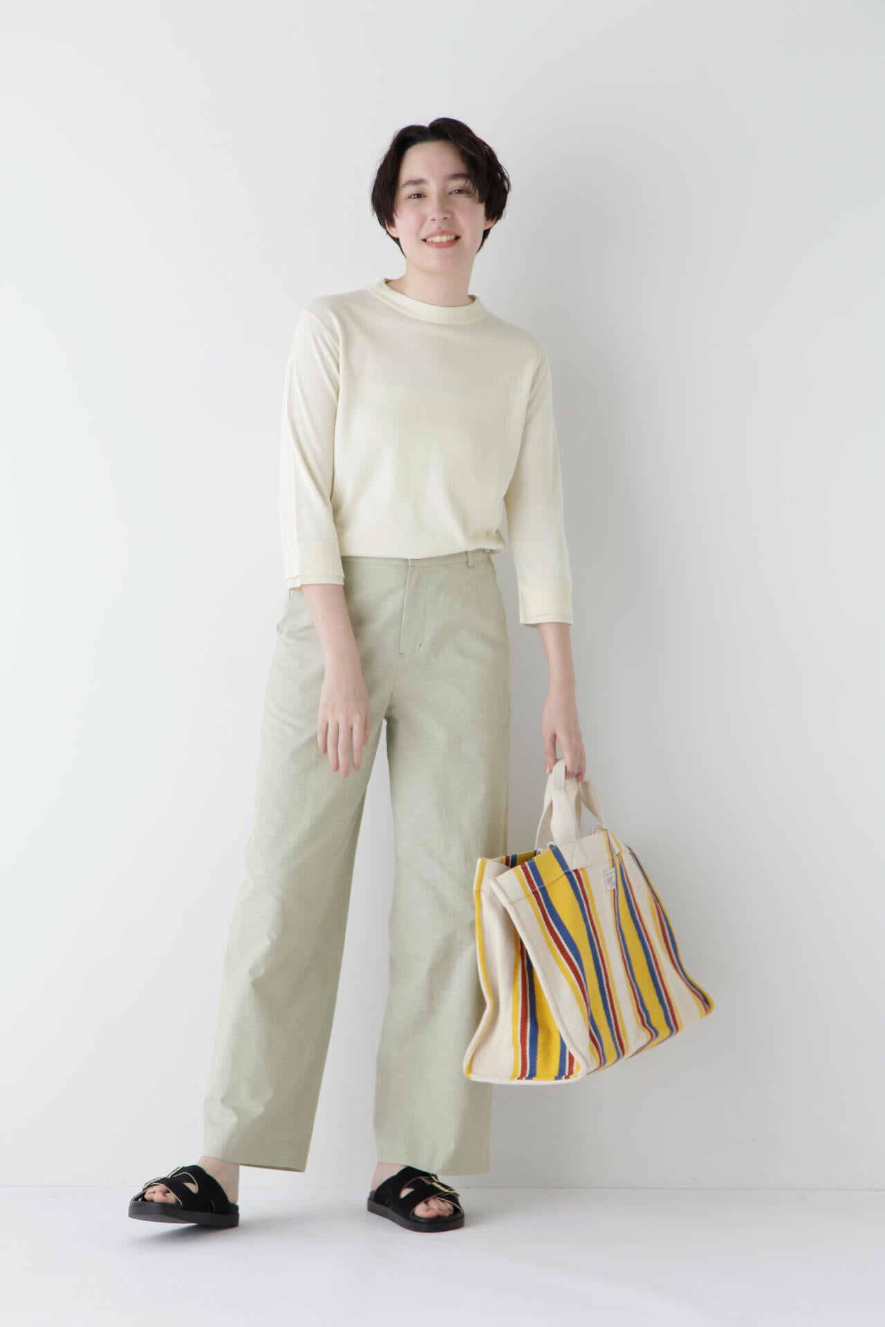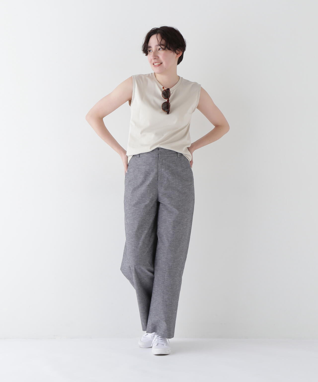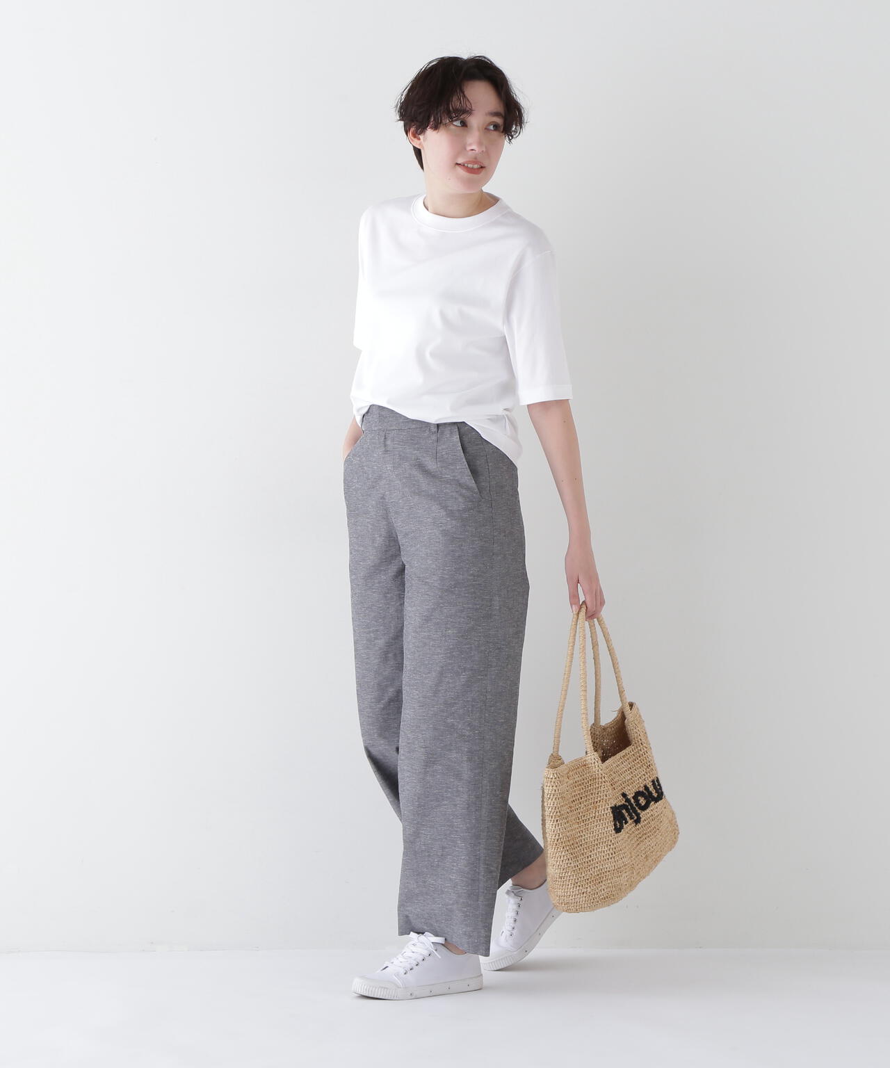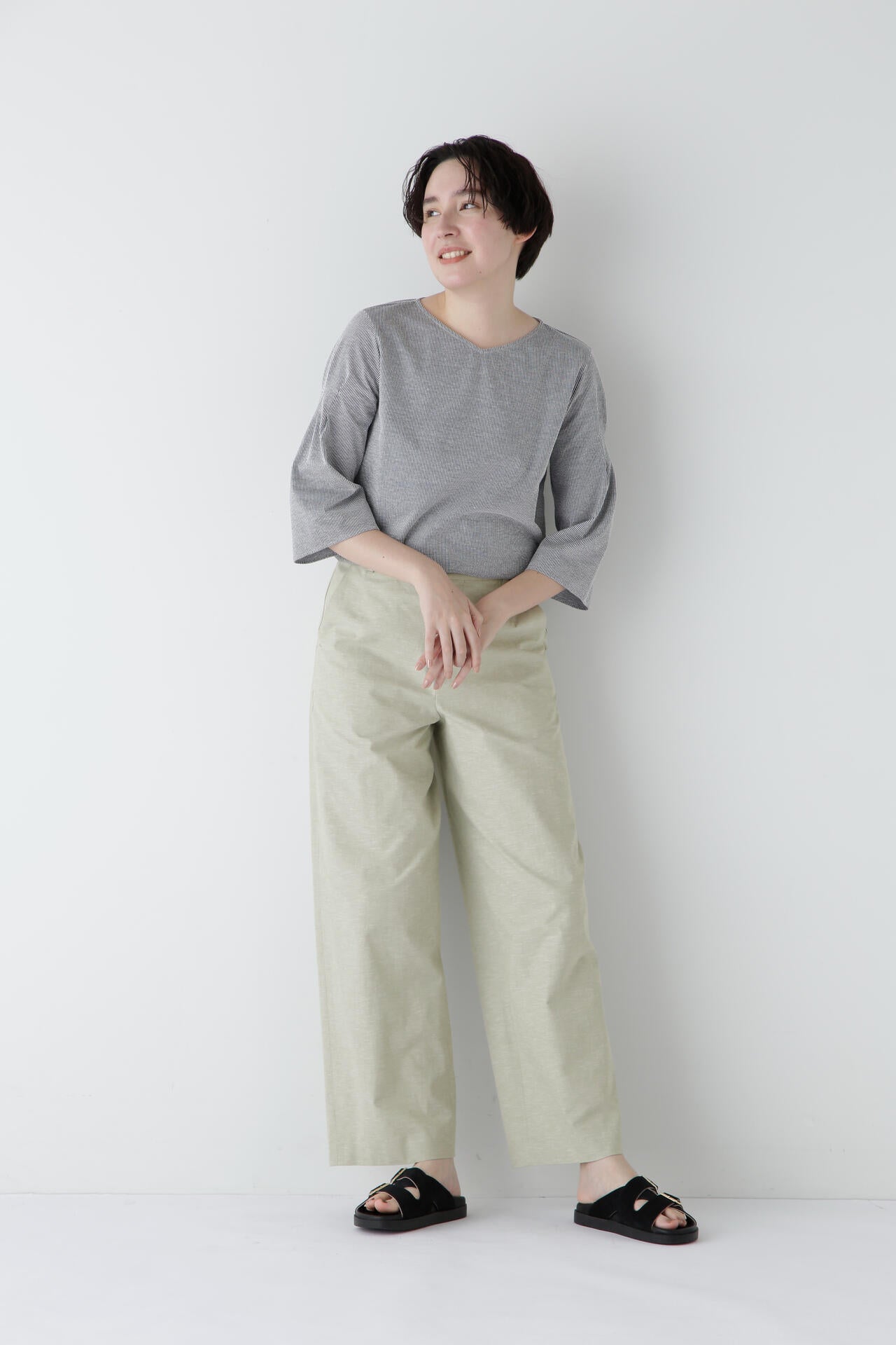 ニュアンスカラーが爽やかな大人のセミワイドパンツ