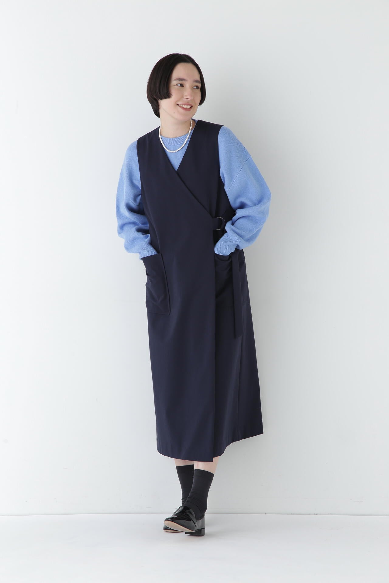 大好評のストレッチポンチ素材を使用した、カシュクール風のベルトディテールが特徴のワンピースです。