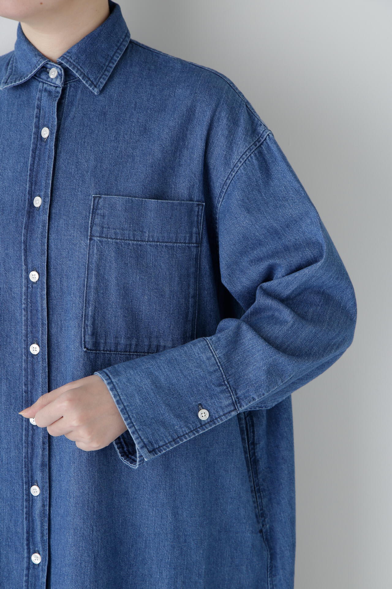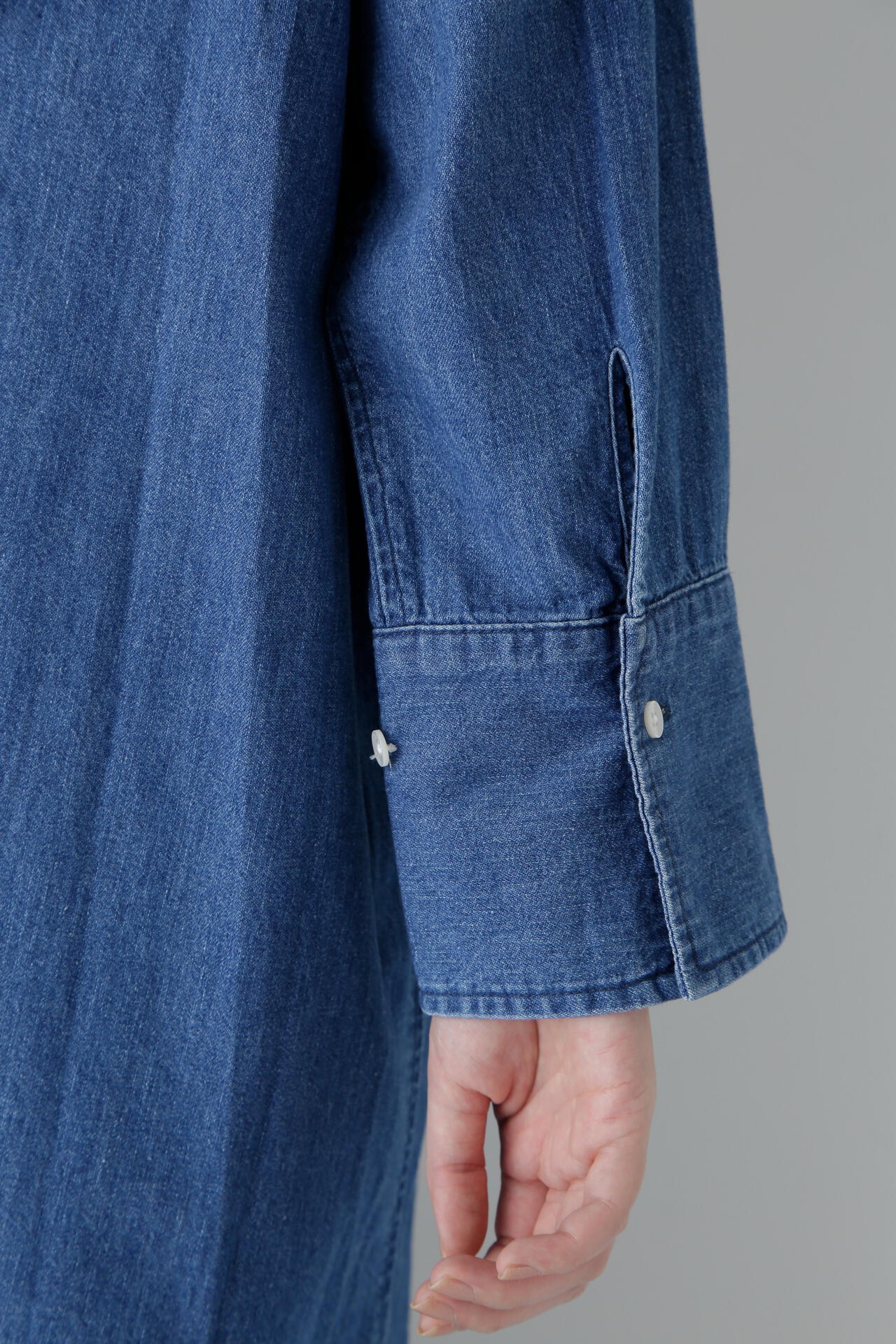 肌寒い時期はインナーにハイネックを重ねたり、暑い時期には深めに開けて、袖を巻くってとロングシーズンご着用いただけます。
