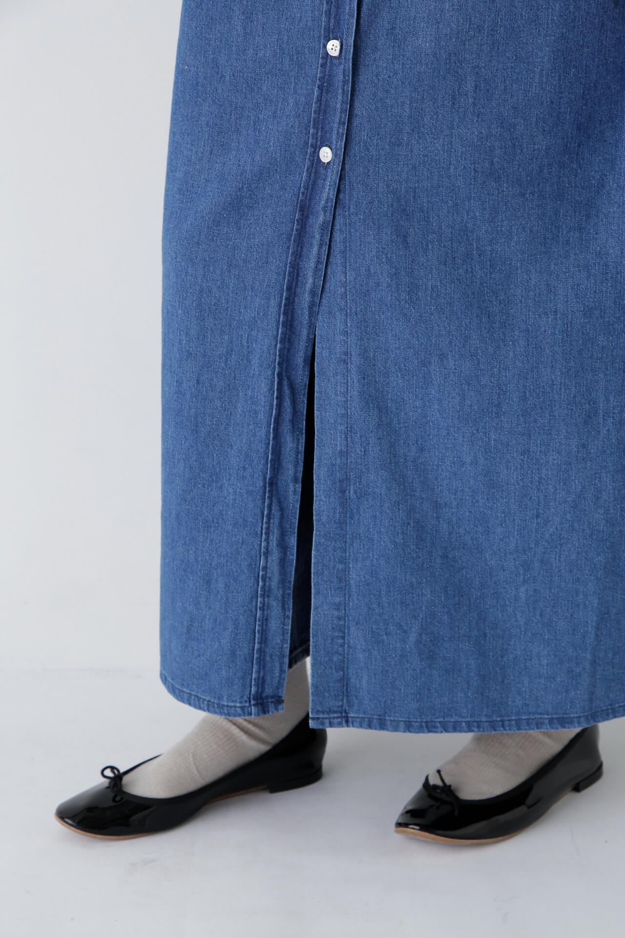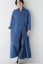 ビックシャツデザインのロングワンピース。袖口は広めなのでボタンが2箇所あり袖口幅を調整してご着用いただけます。