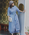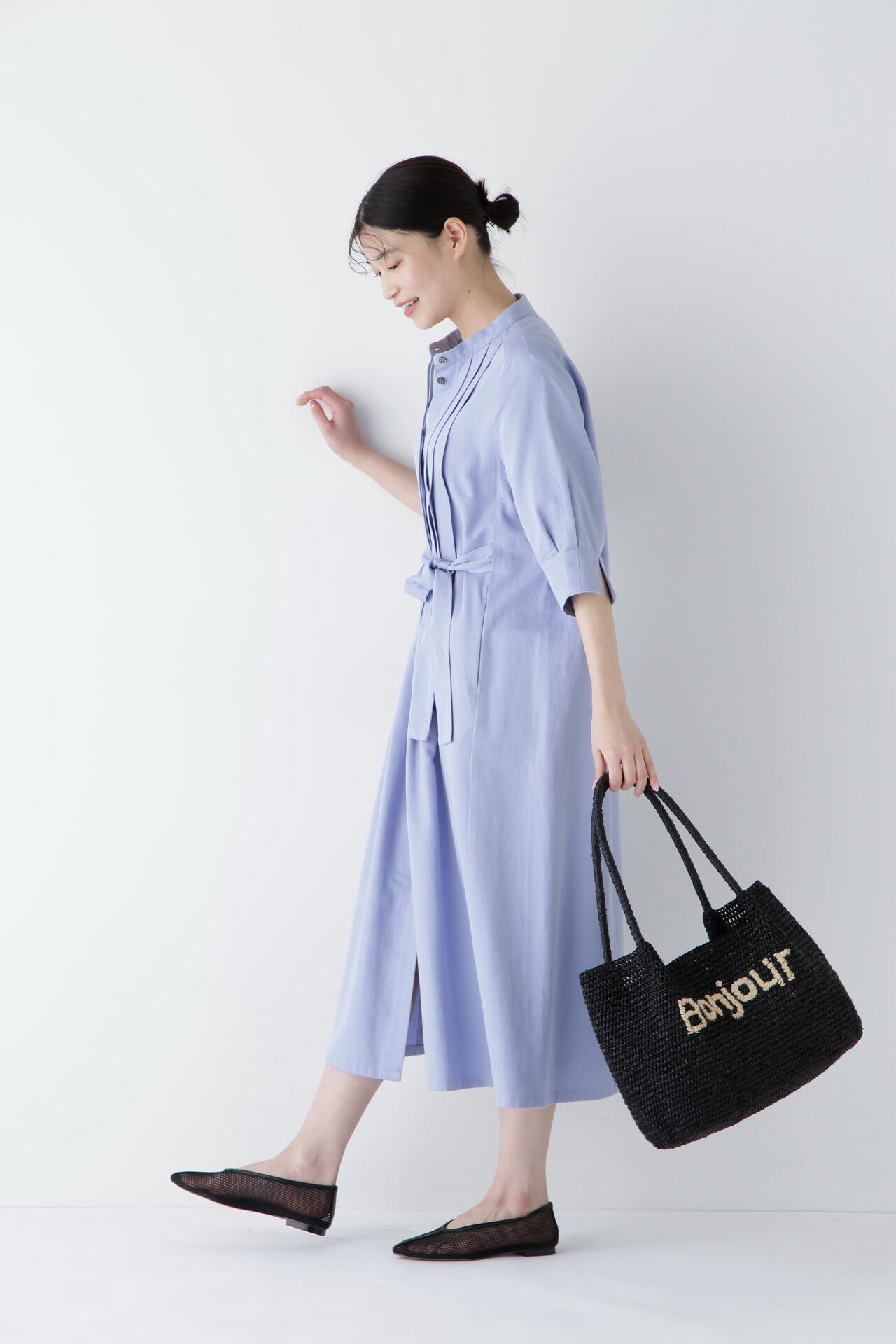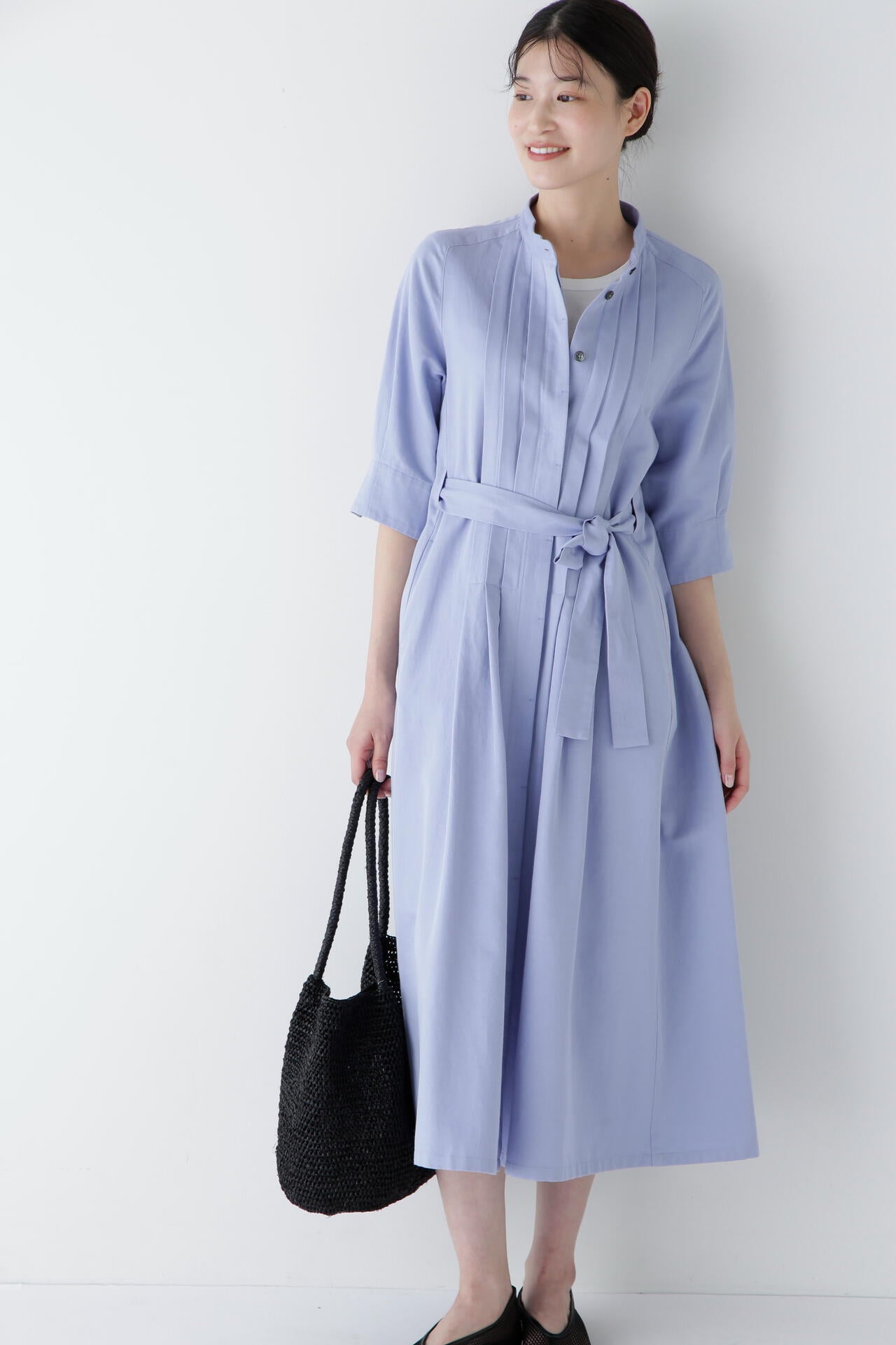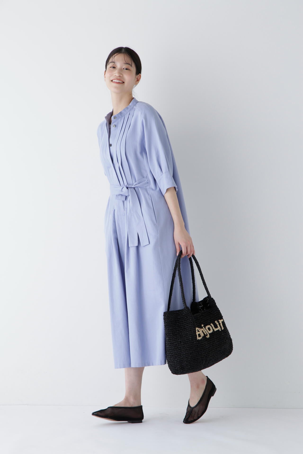 比翼仕立ての前全開き仕様なので一枚着としても羽織りとしても着回しの効くワンピースです。