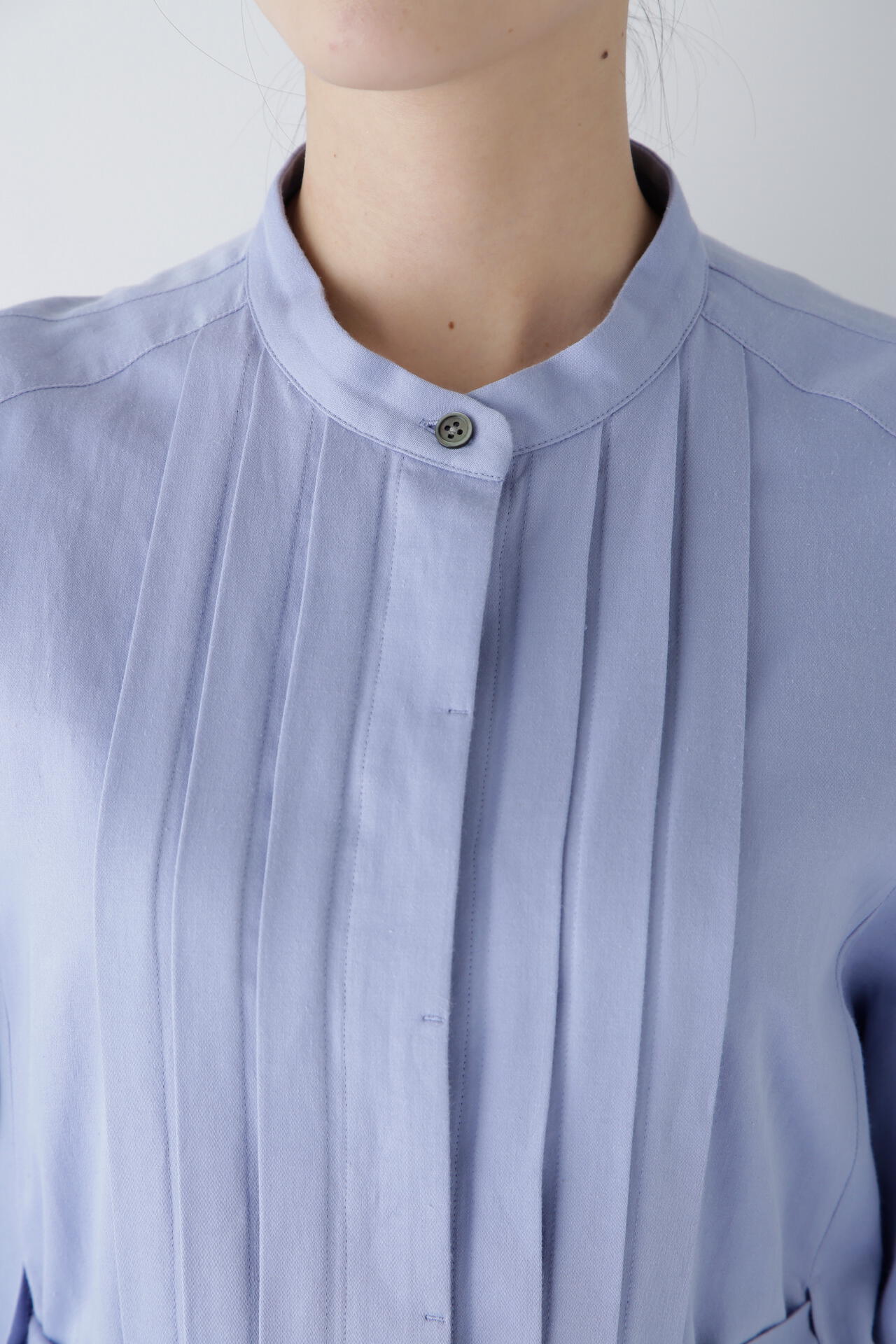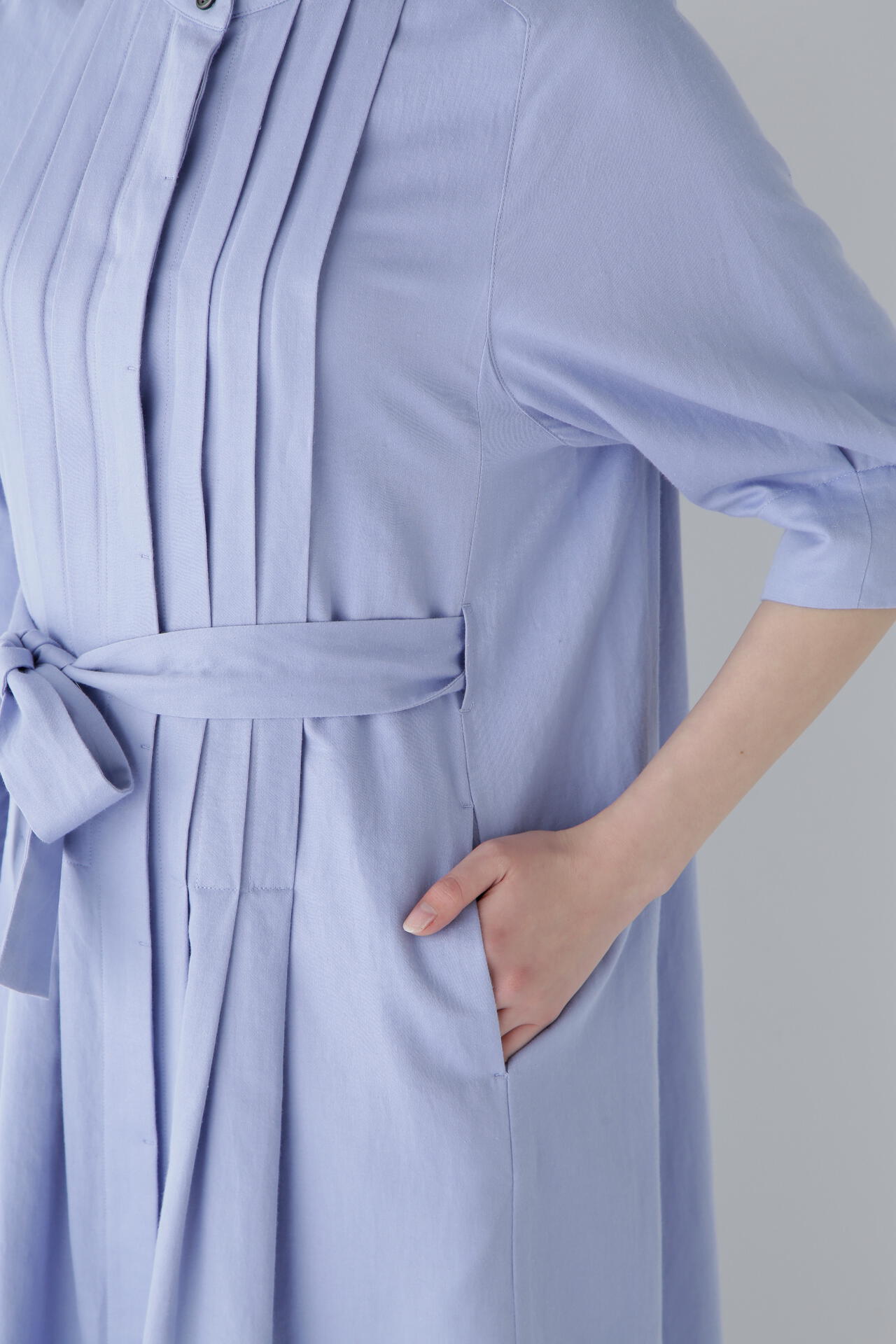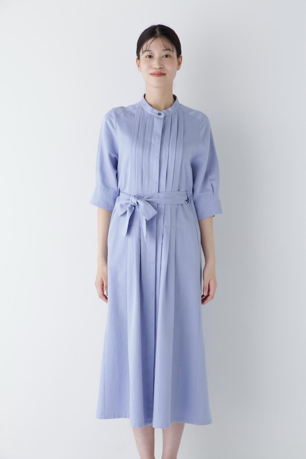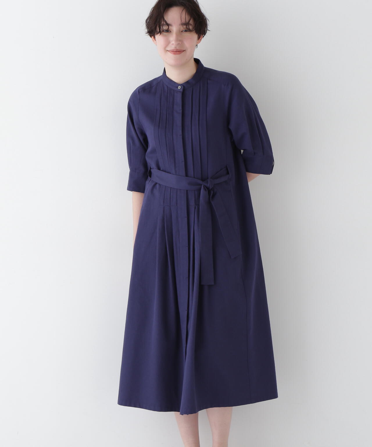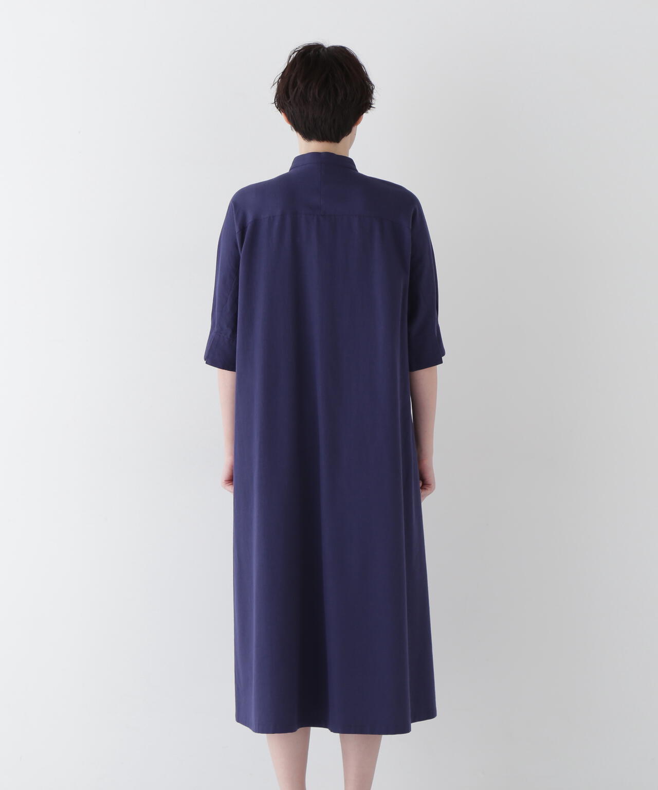 フロントにタックディテールの見えてくるバンドカラーワンピースです。変形ラグランスリーブの袖口はスリット仕様になっておりターンバックもできます。