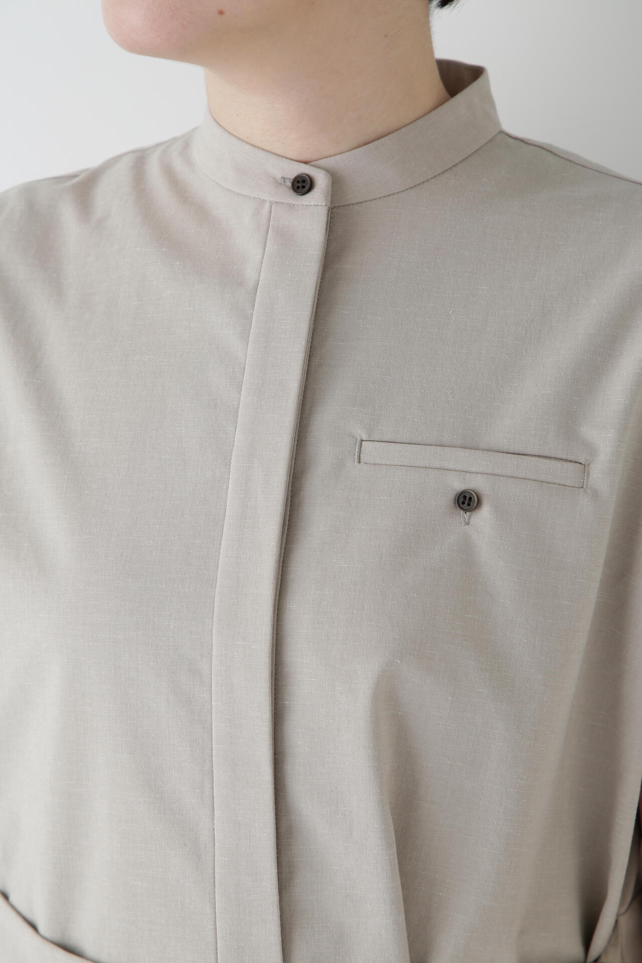 シンプルながら上品見えするデザインなので、オフィスシーンにもぴったりの一枚。パンツを合わせたマニッシュなレイヤードスタイルもおすすめです。