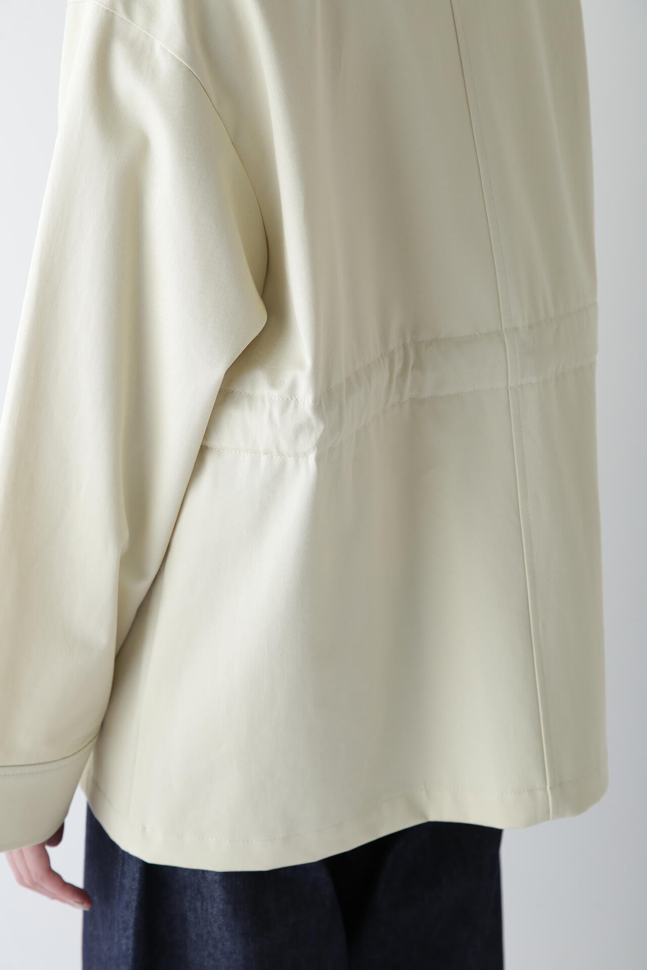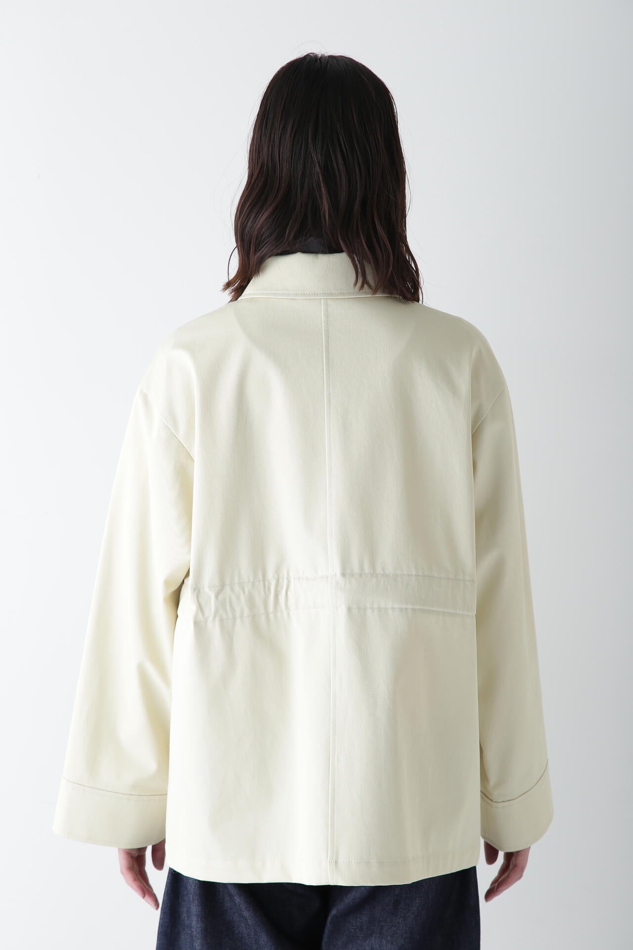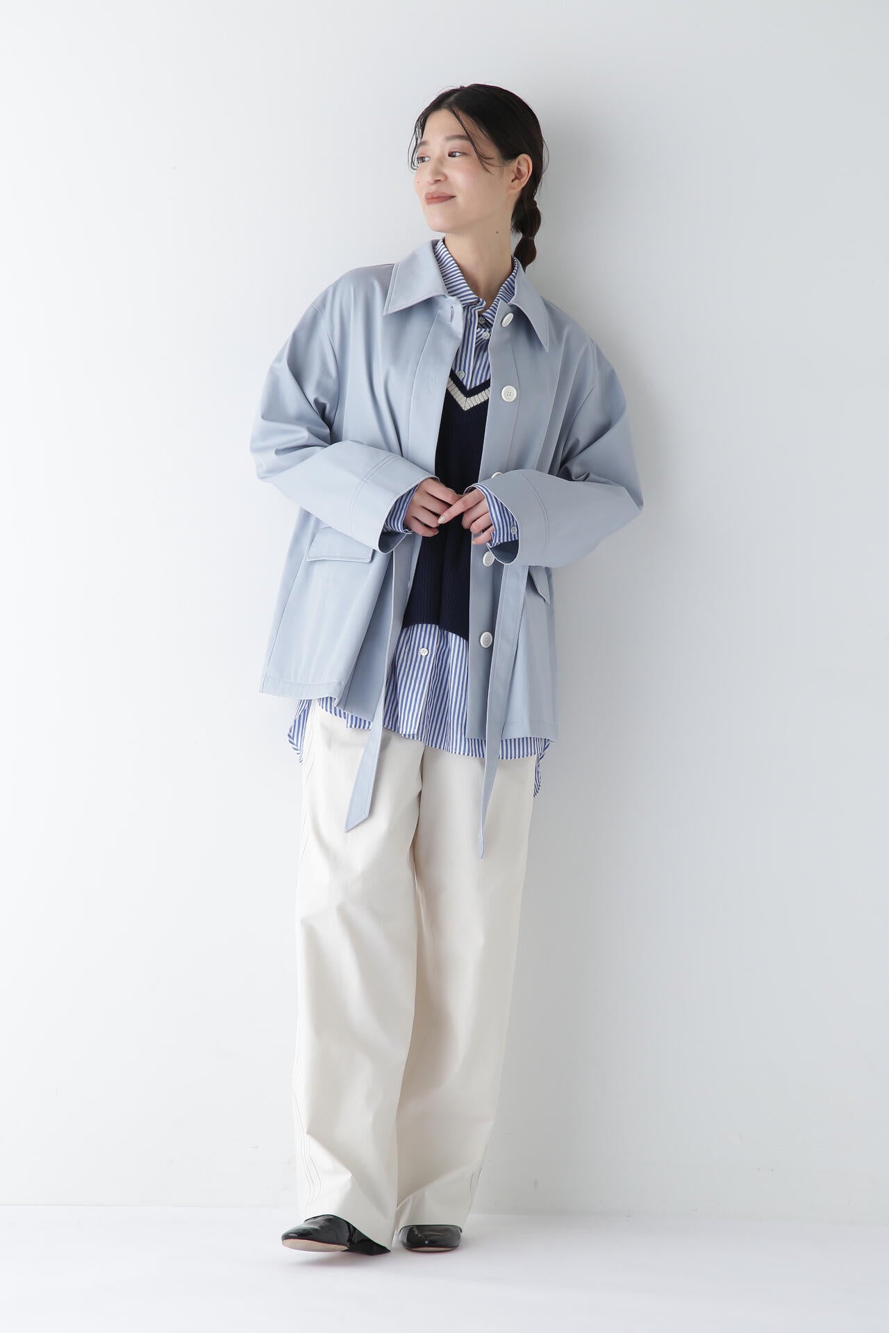 綿ですが後加工を施すことによって合繊のような反発感のある風合いに。きれい目カジュアルな表情に仕上げています。