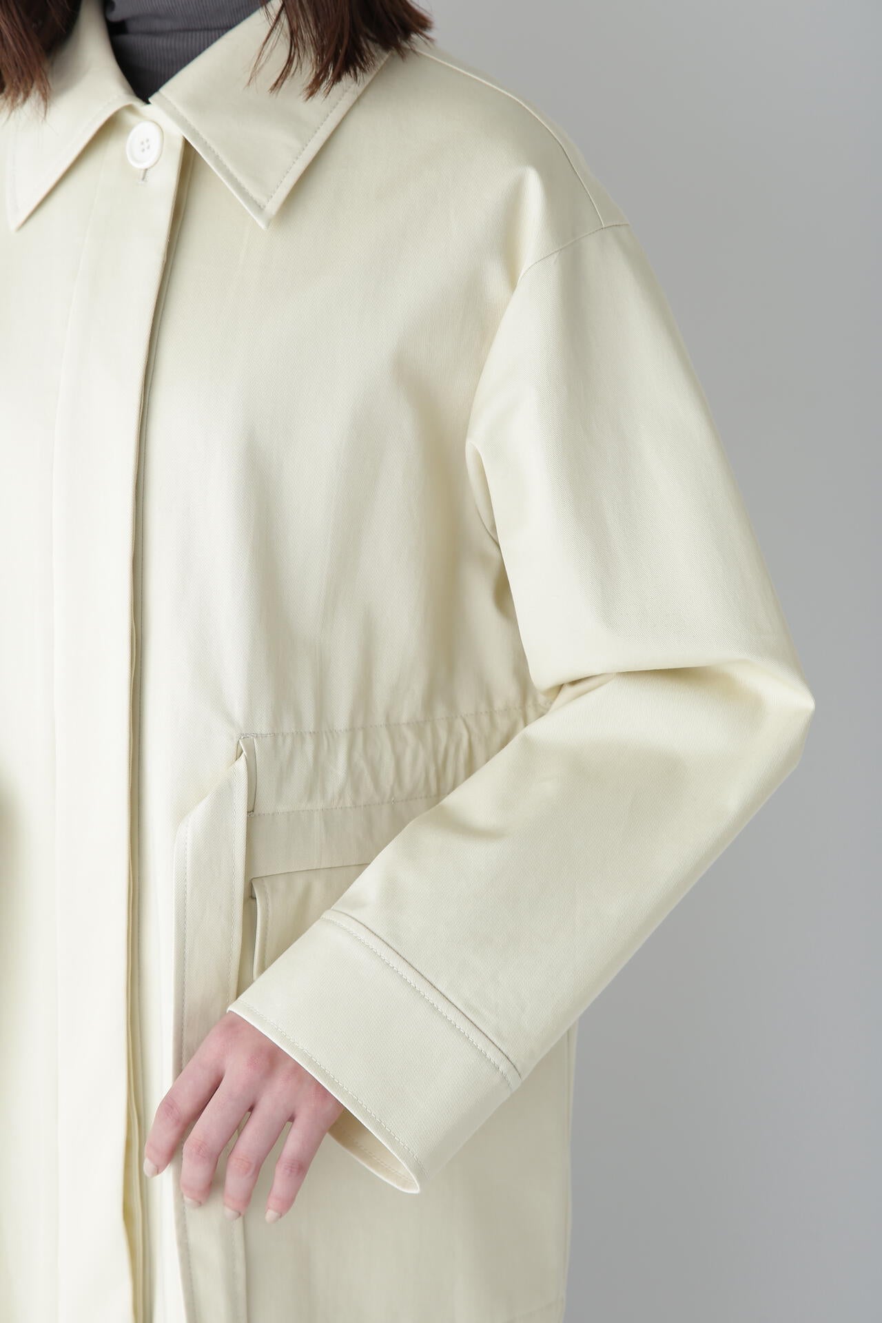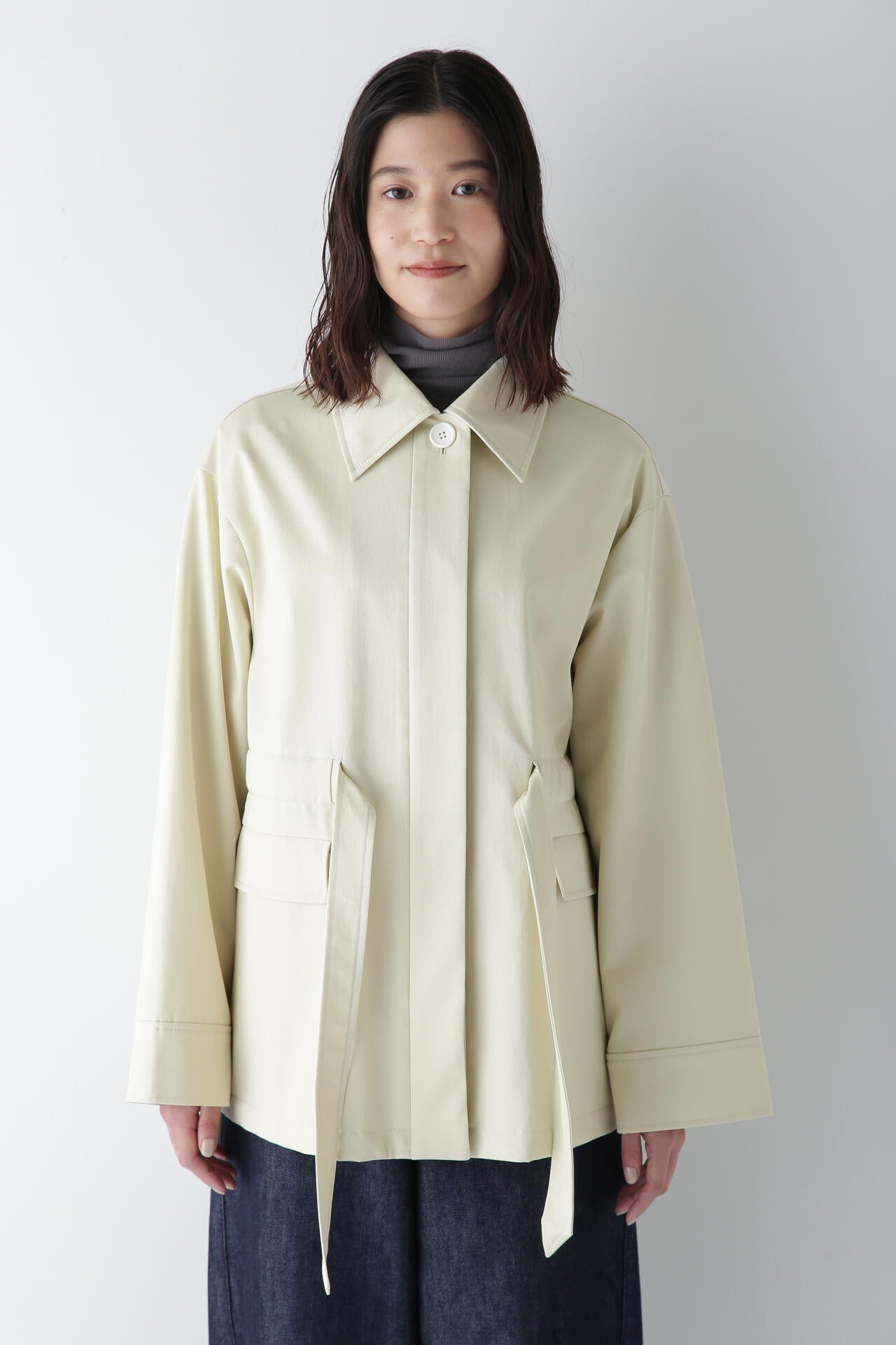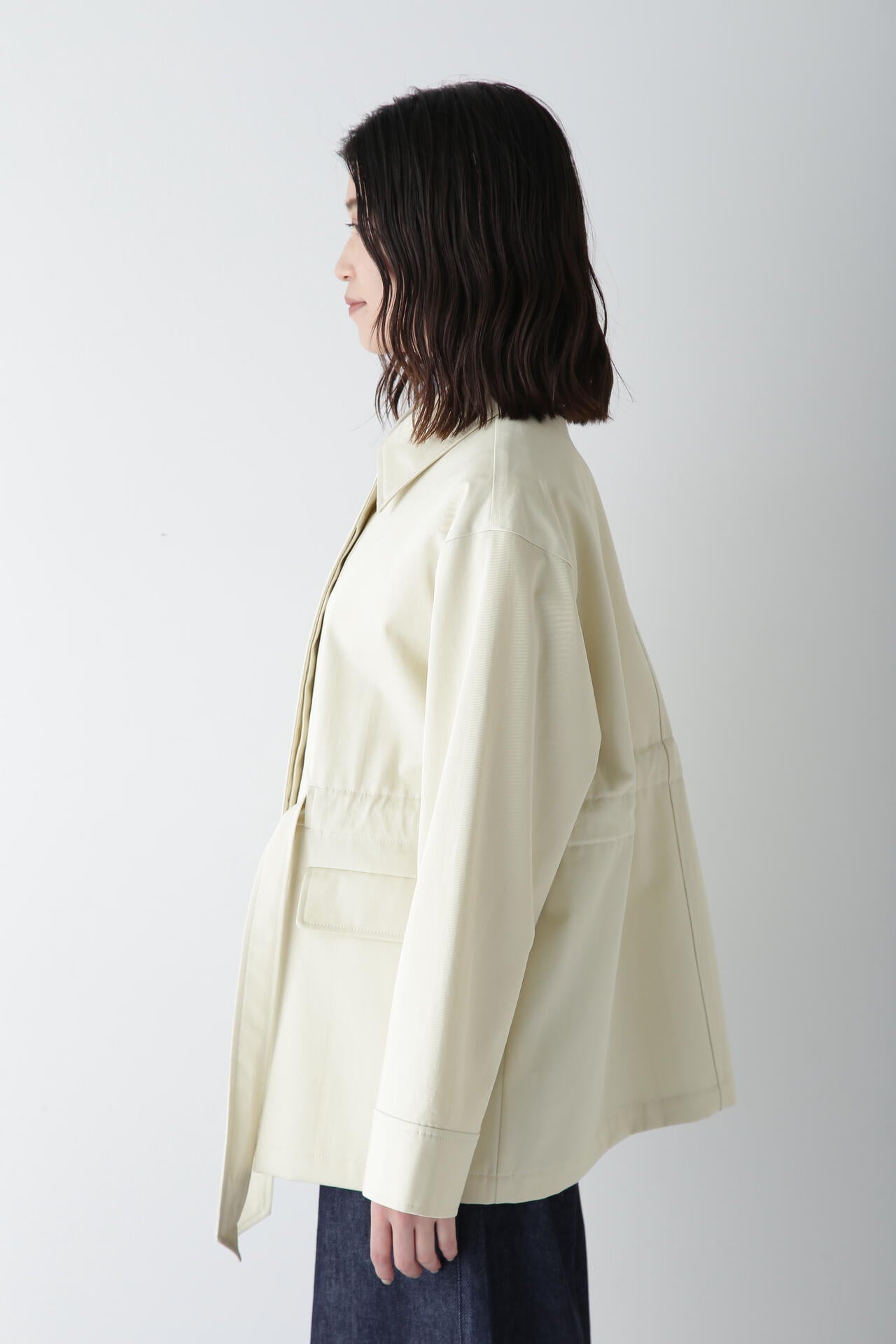 綿ですが後加工を施すことによって合繊のような反発感のある風合いに。きれい目カジュアルな表情に仕上げています。