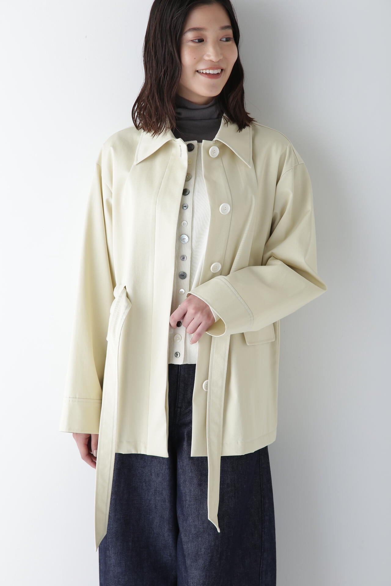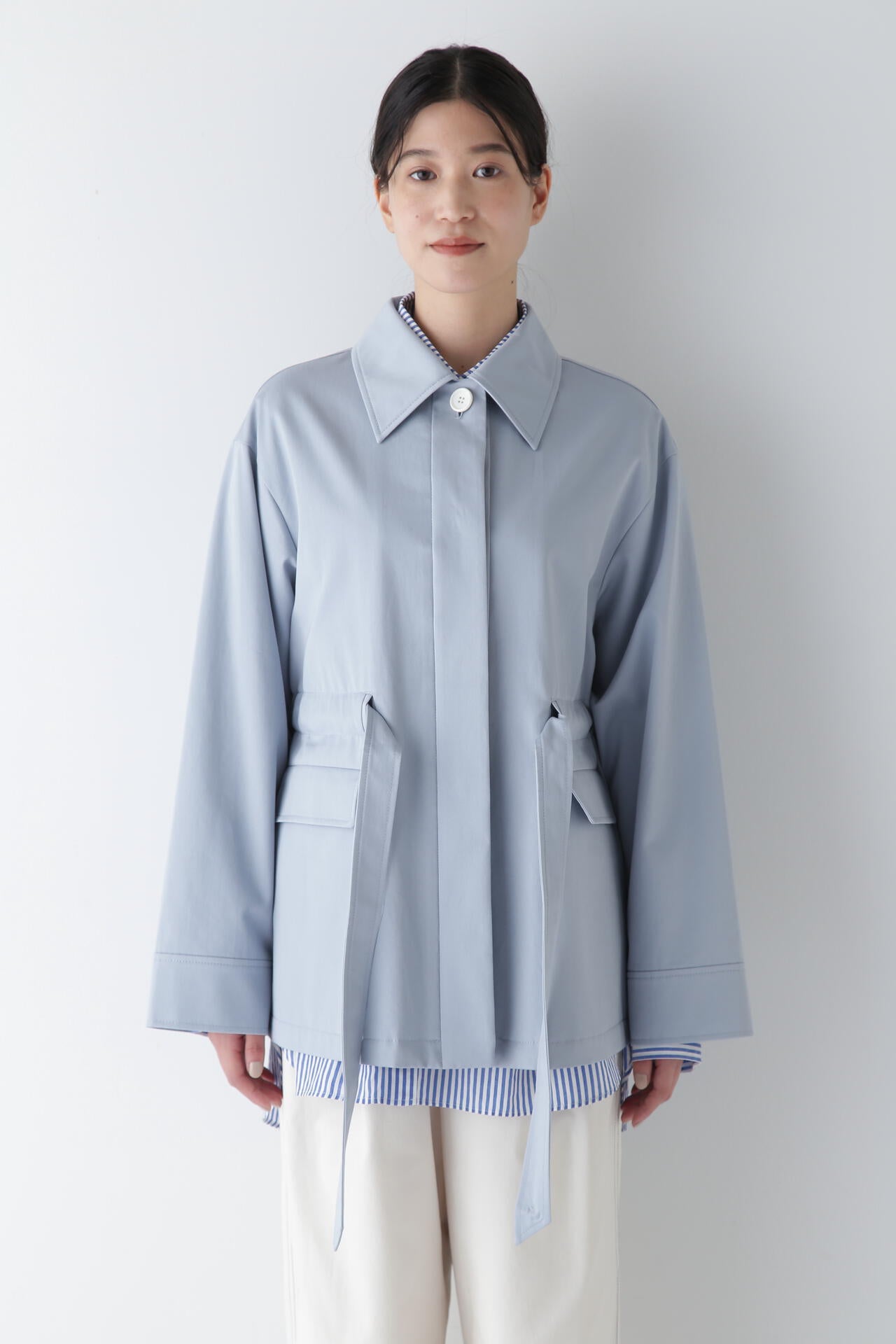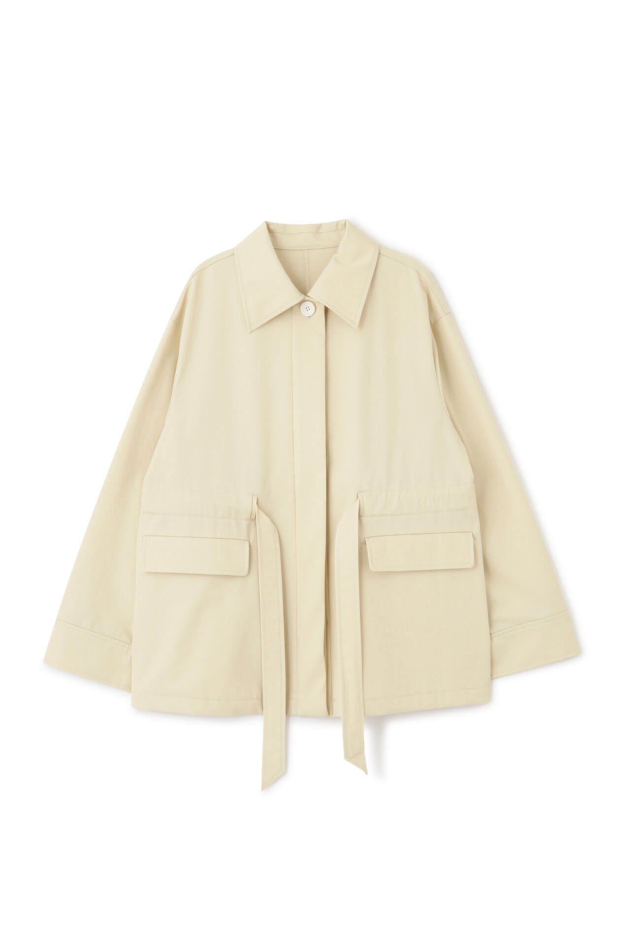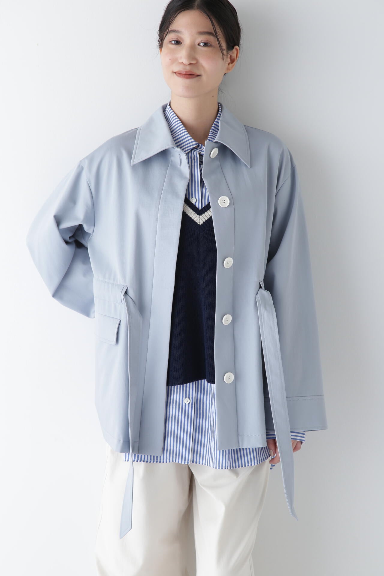 春らしいパステルな色合いが嬉しい少しオーバーサイズなジャケットです。ウエストひもは縛りすぎずラフに着用するのがおすすめです。お尻にかかる丈感も嬉しいポイントです。