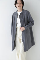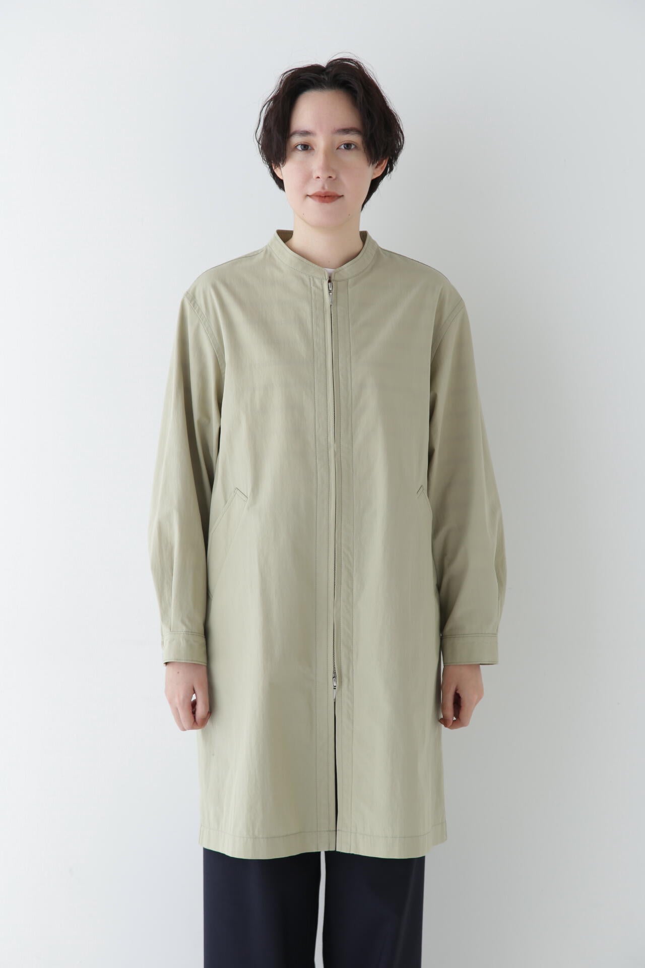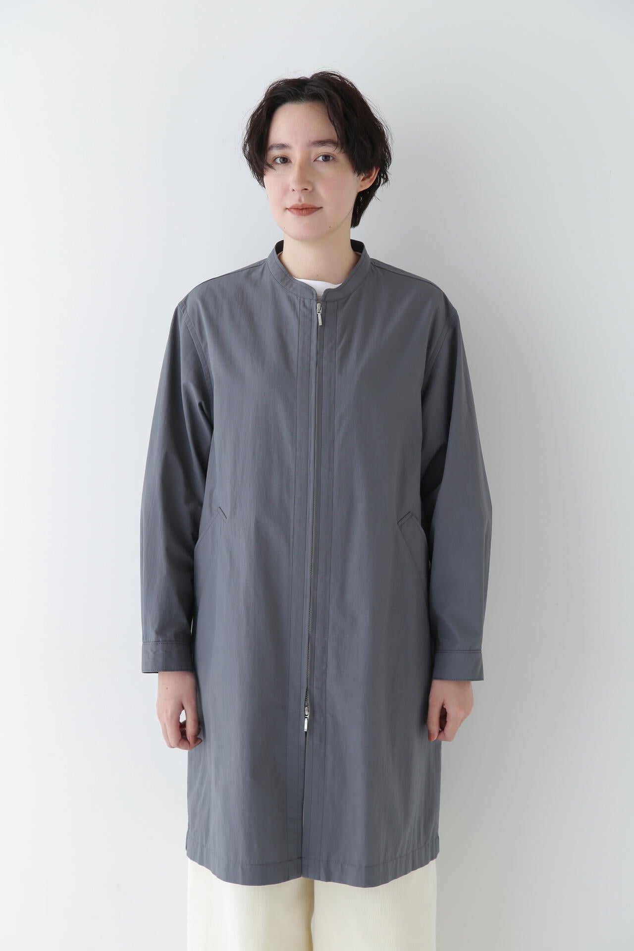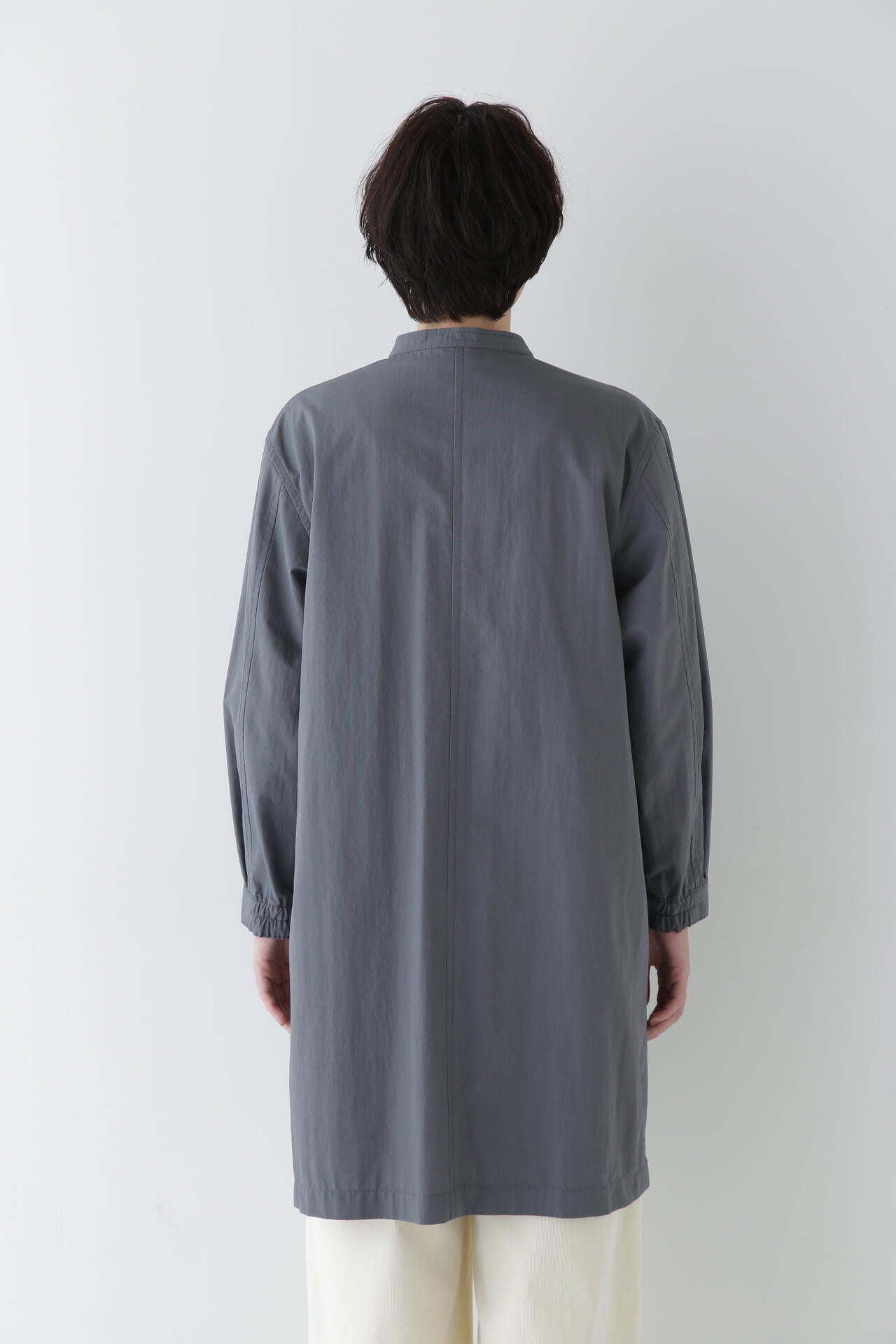 シンプルなスタンドカラーのロングコートです。袖口は開きはありませんがゴム仕様になっているので袖をたくし上げることで抜け感を演出できます。