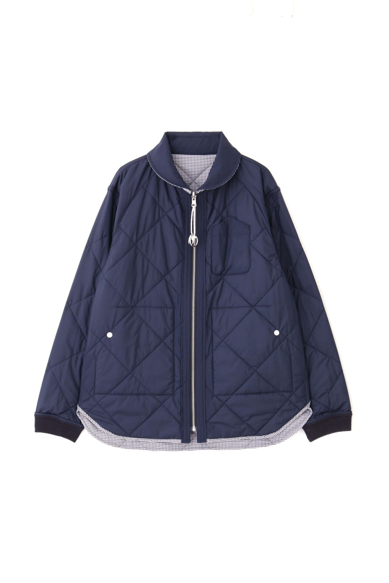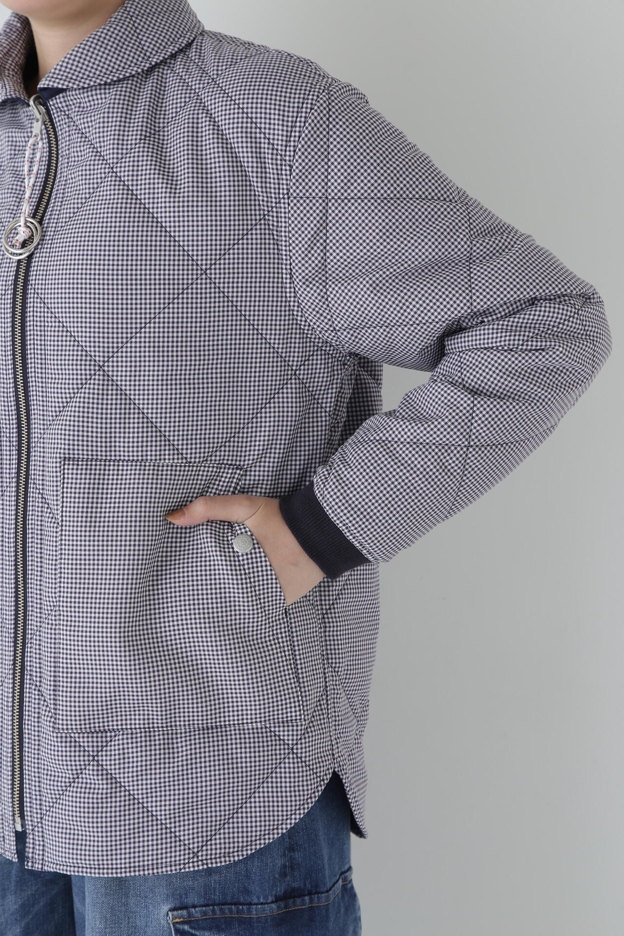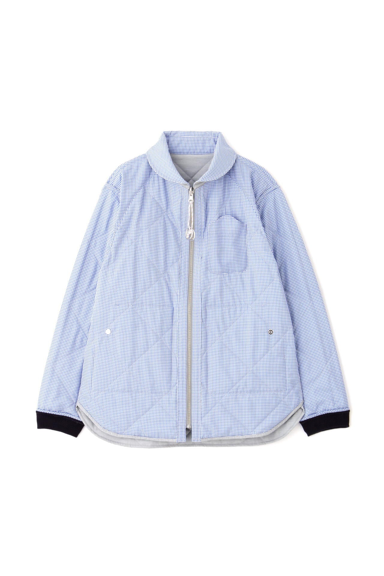フレンチマリンブランド「NATIC」とのコラボアイテムです。衿やポケットのカットライン、ヨットなどから着想を得た引手などのマリン風オリジナル付属がポイントのリバーシブルキルティングジャケットです。