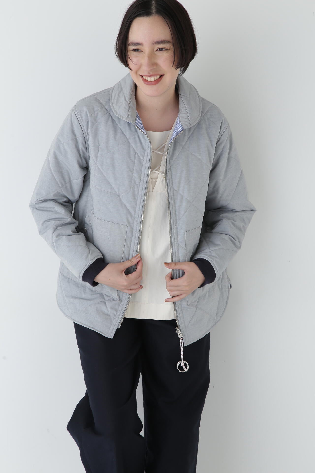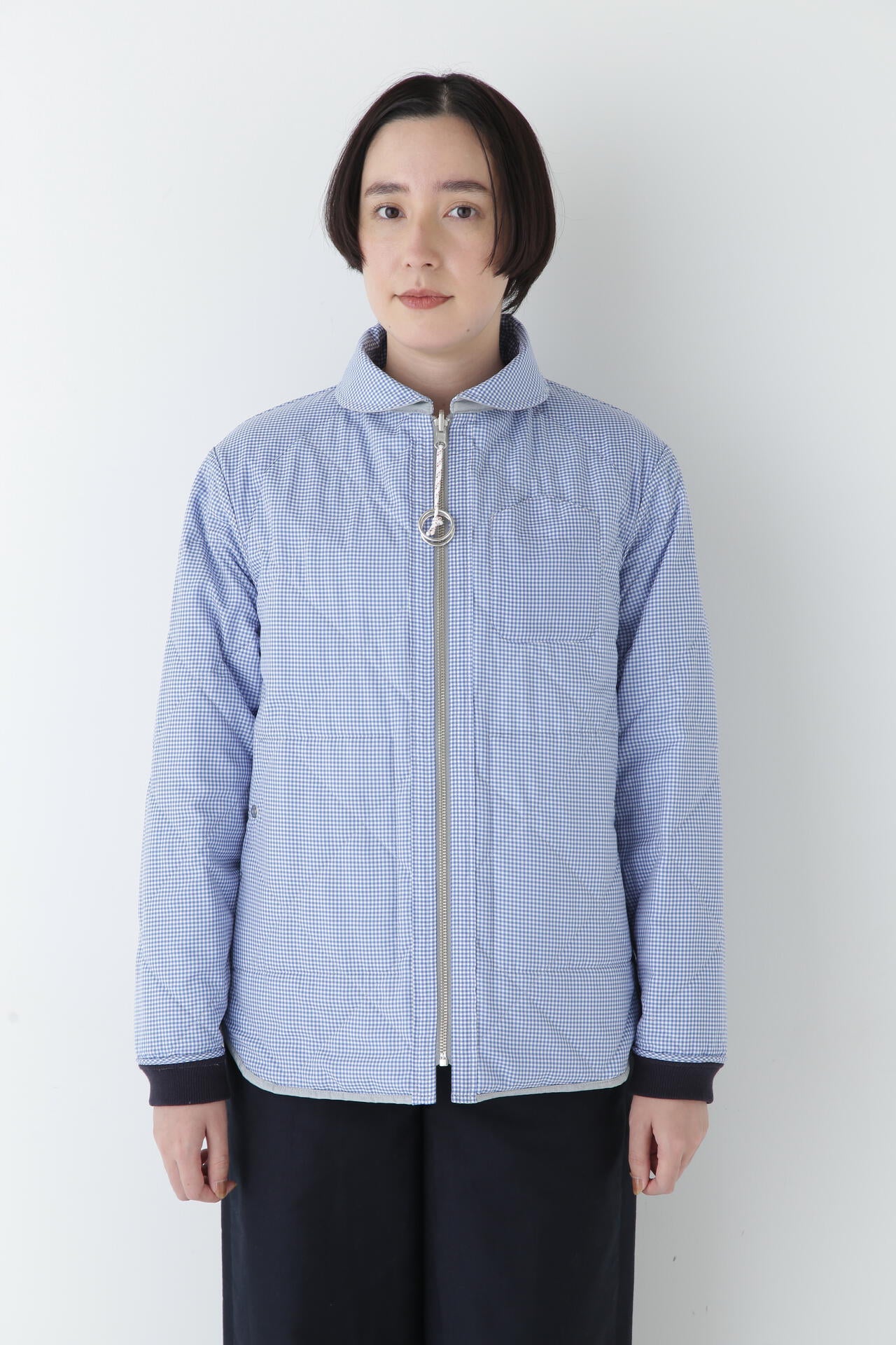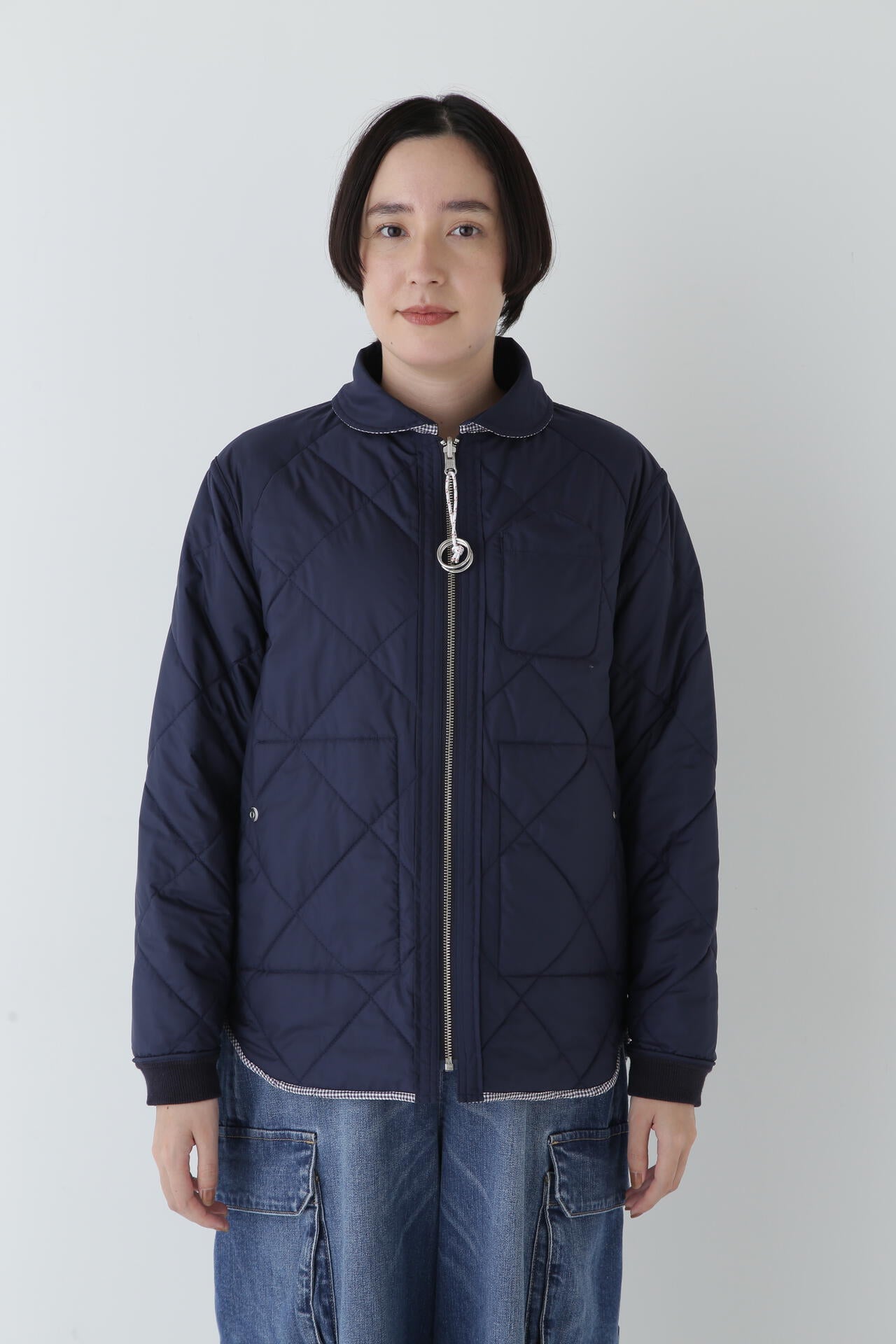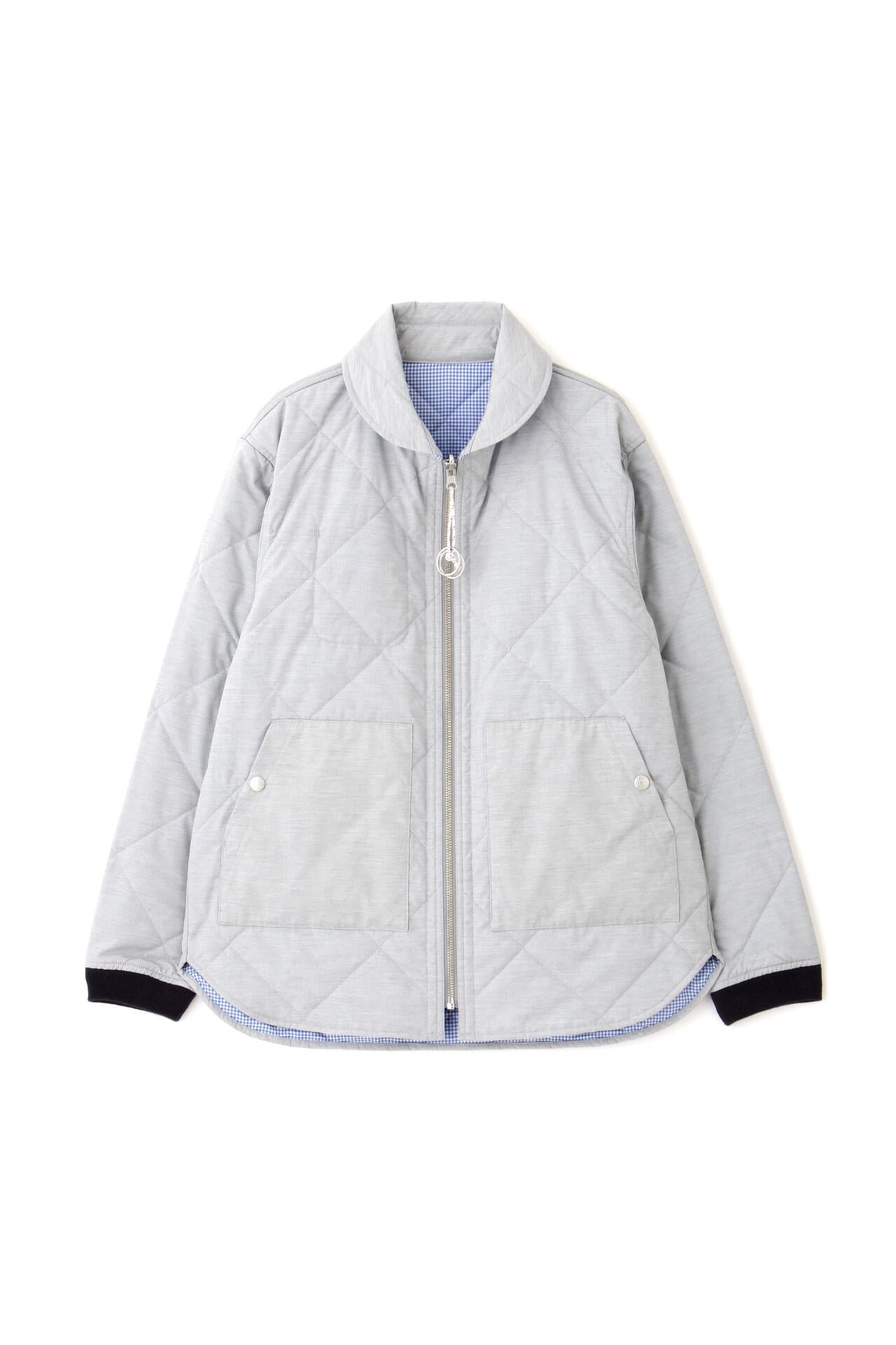 フレンチマリンブランド「NATIC」とのコラボアイテムです。衿やポケットのカットライン、ヨットなどから着想を得た引手などのマリン風オリジナル付属がポイントのリバーシブルキルティングジャケットです。