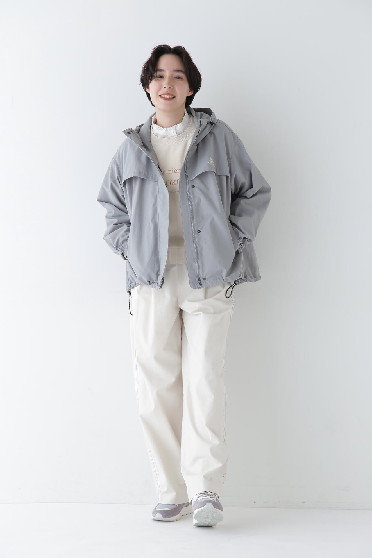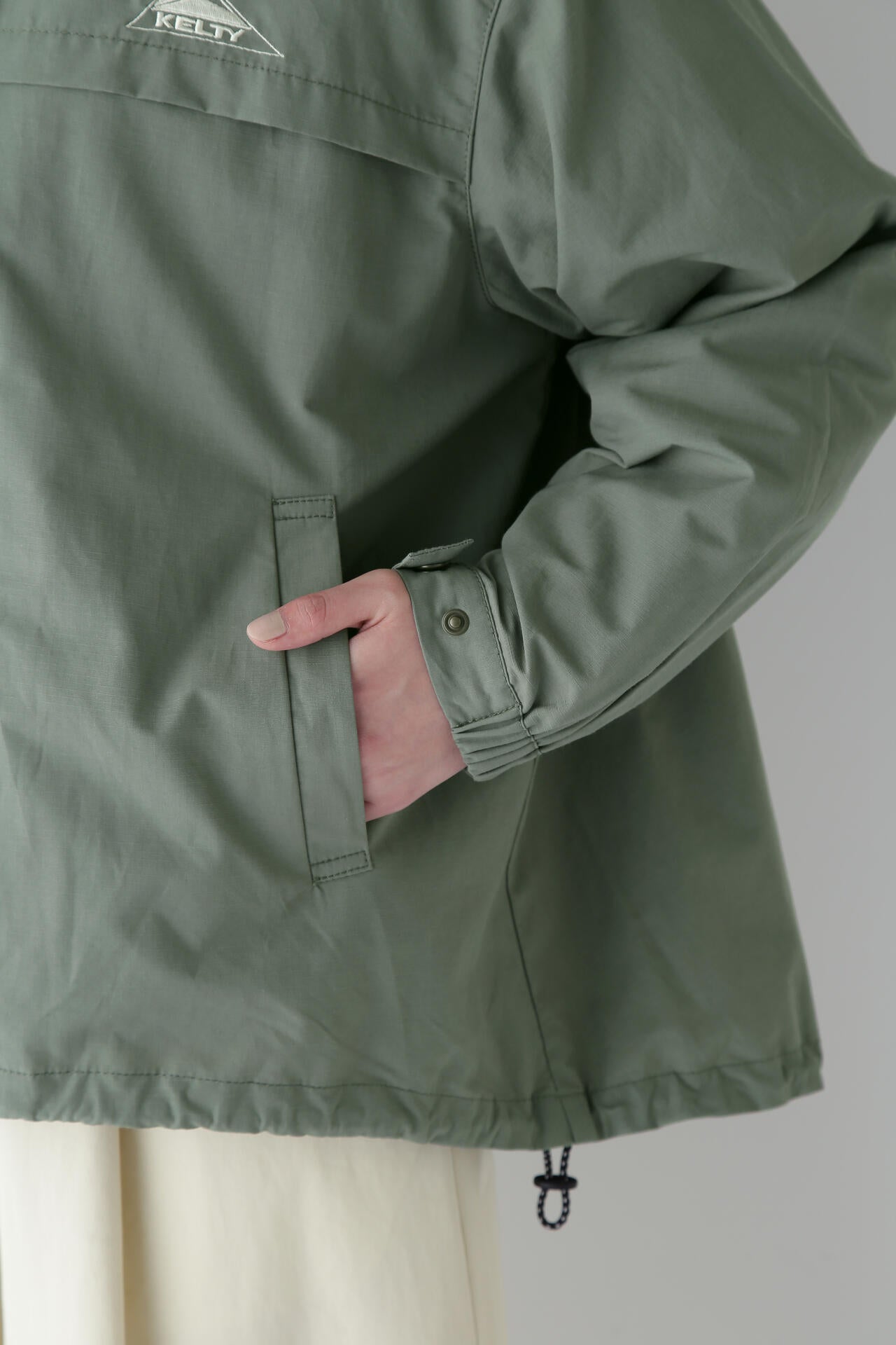 裾のドロストを絞ることで、気分に合わせてシルエットの変化を楽しんでいただけます。アウトドアシーンやカジュアルなデイリースタイルに活躍します。