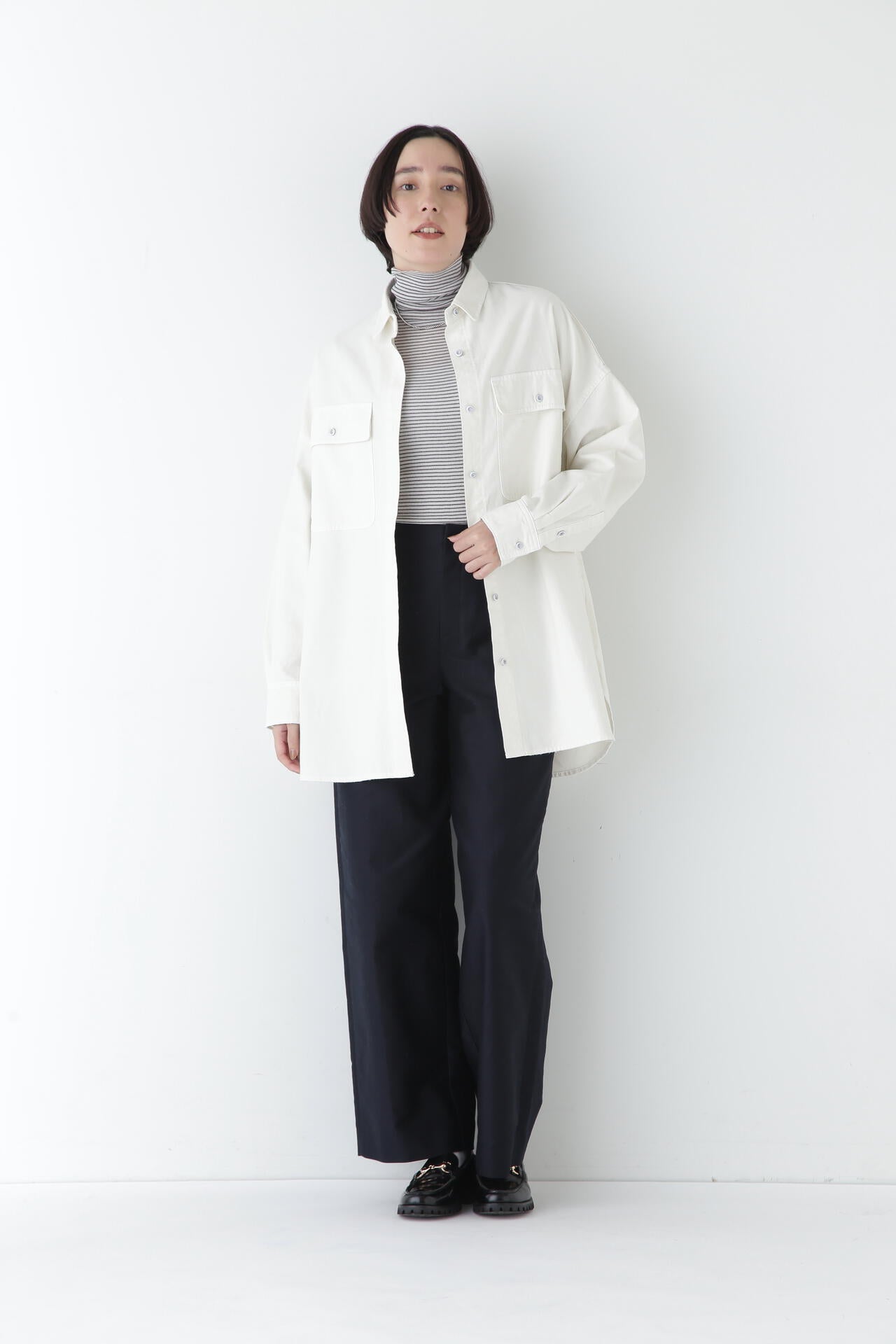 透け感を活かした一枚着での装いはもちろん、シャツやニット、ワンピースなど様々なアイテムとのレイヤードスタイルを楽しんでいただけます。