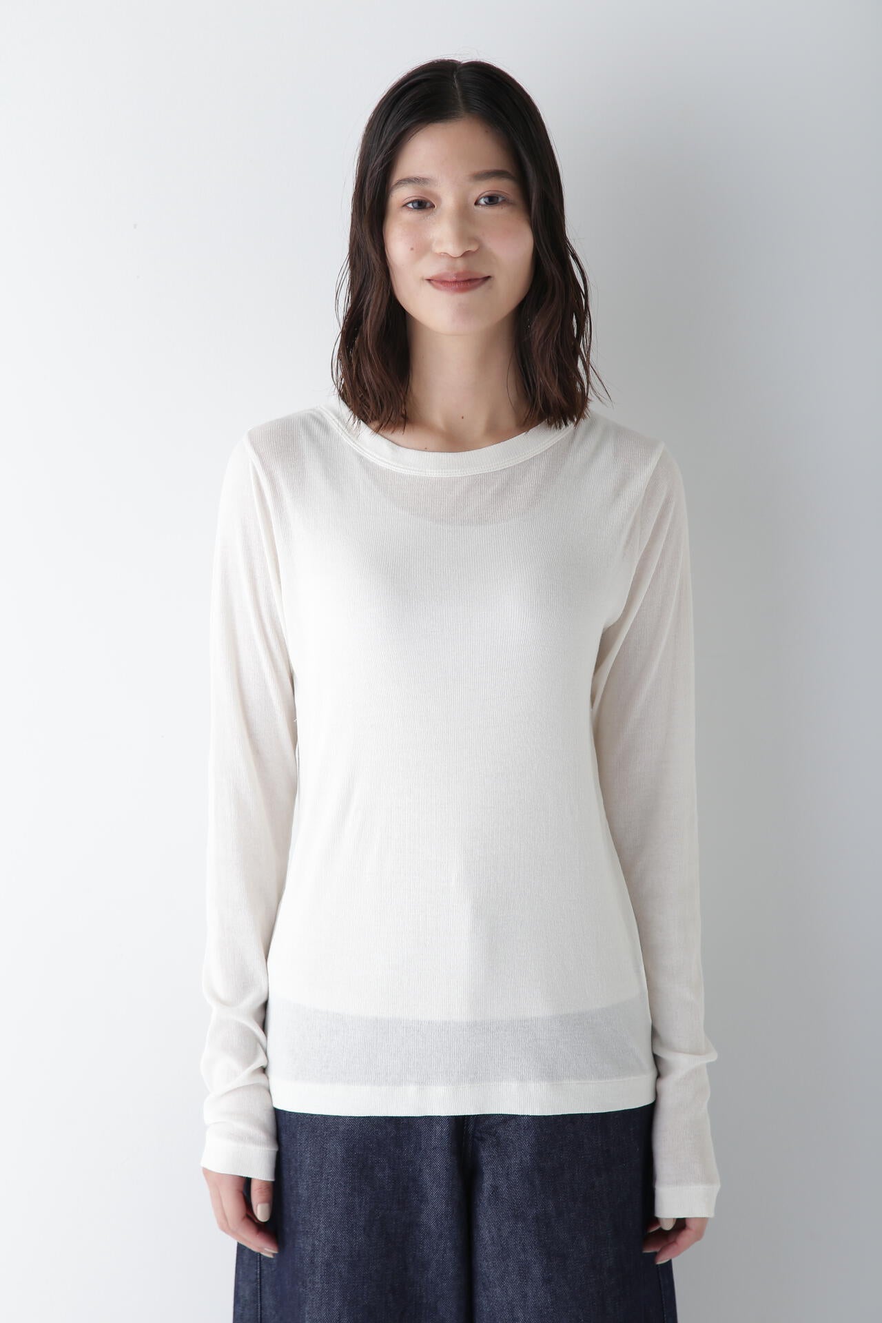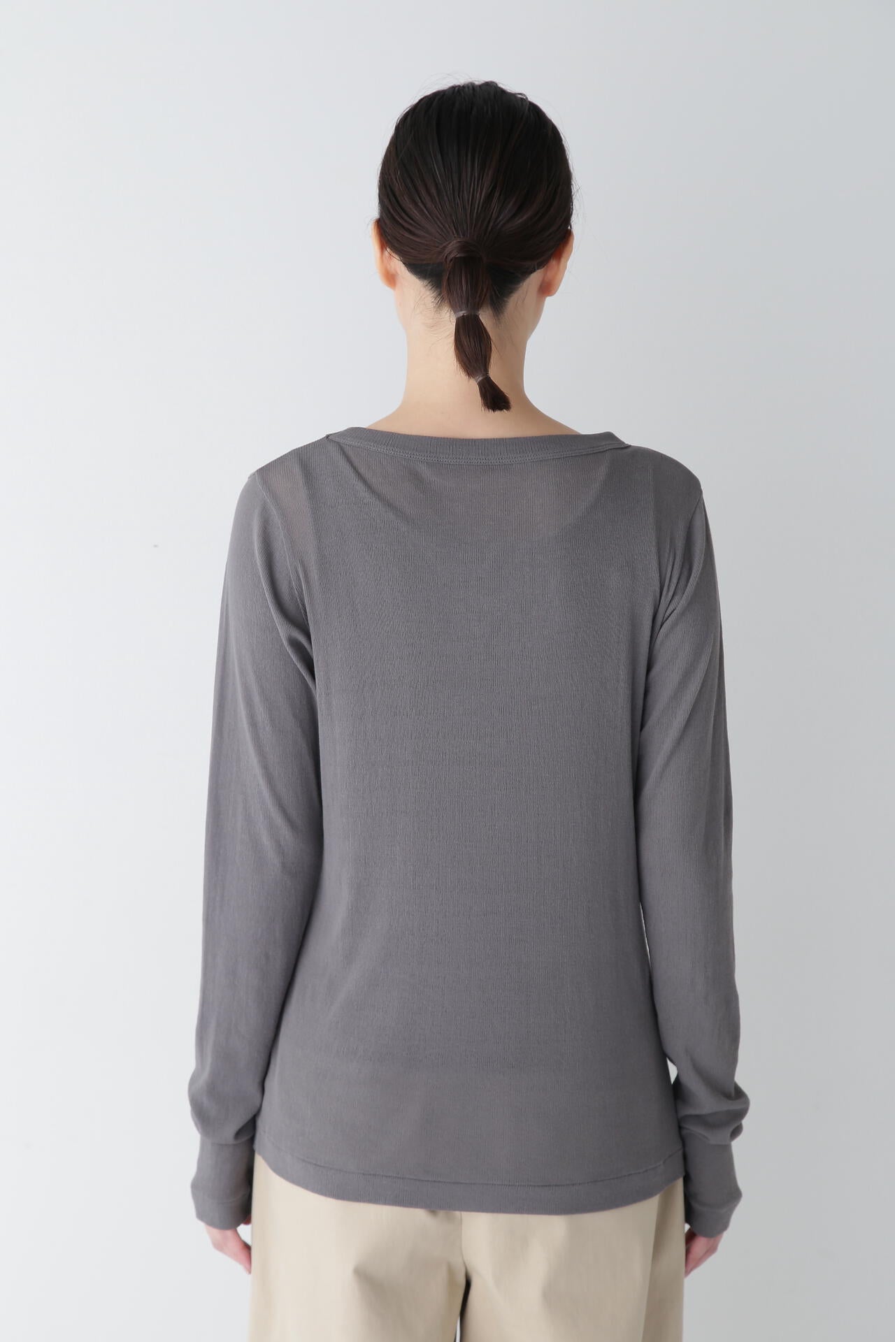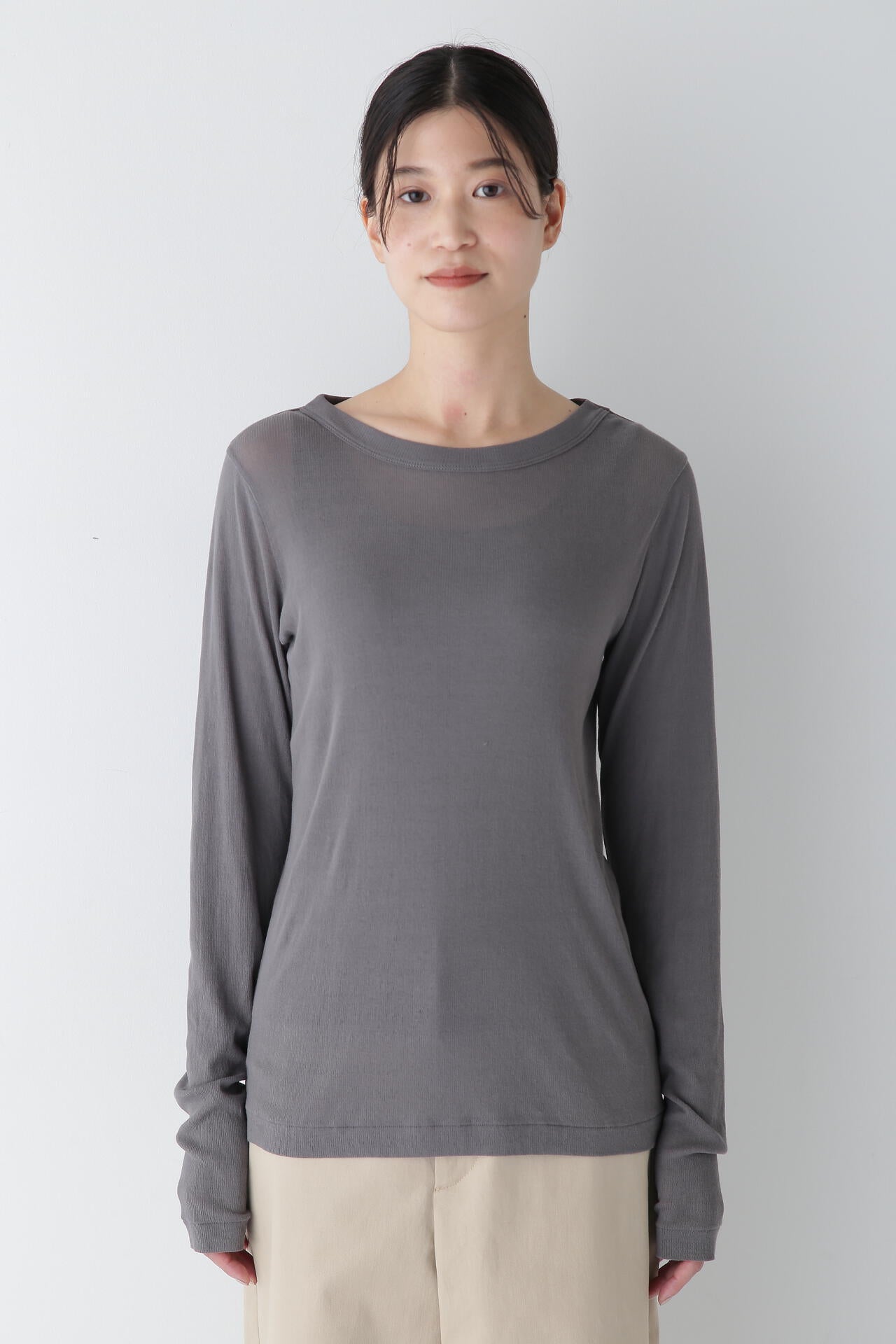 シャツやニット、スウェットなど様々なアイテムのインナーとしてもシーズン通して活躍する一枚です。長めの袖はレイヤード時に袖口から出すのがおすすめです。