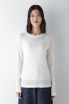 毎年人気のシアーテレコタートルと同素材でクルーネックの長袖をおつくりしました。衿はカジュアルに太めのバインダー仕様。袖はタートルより長めに設定しています。
