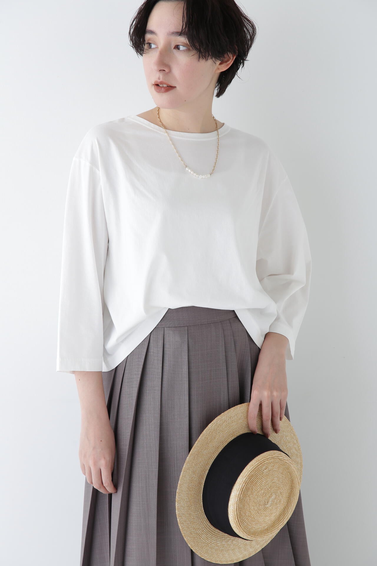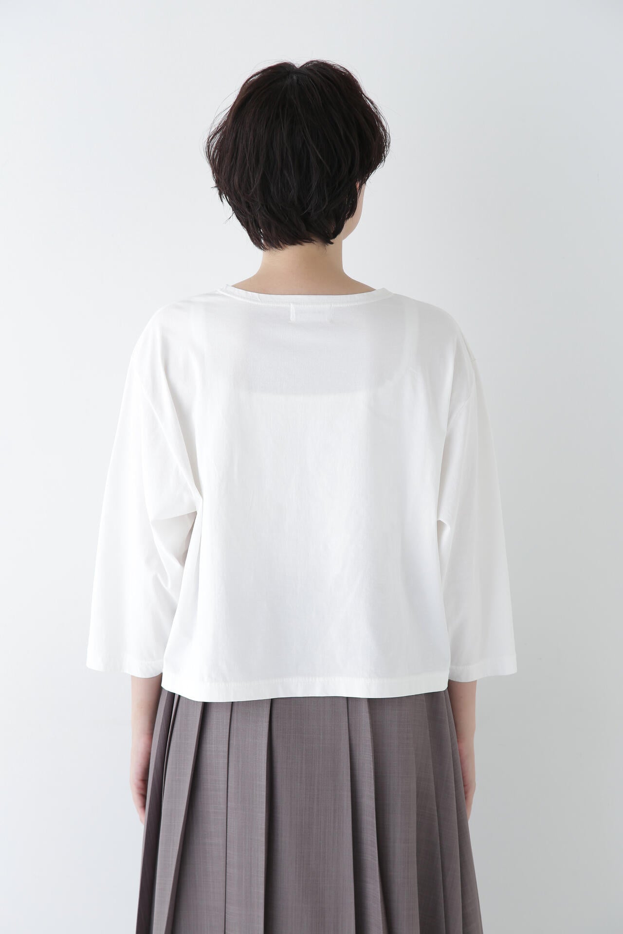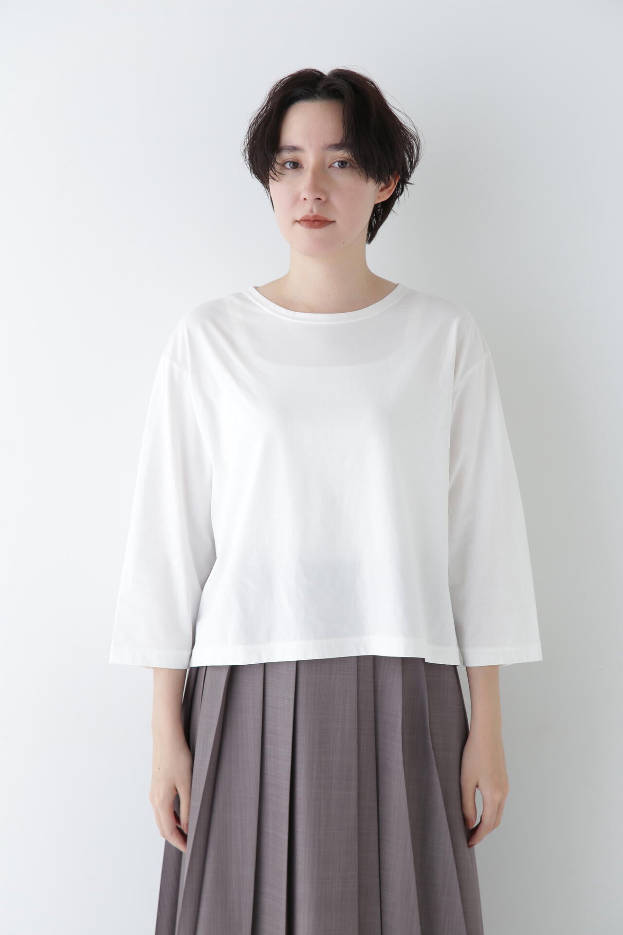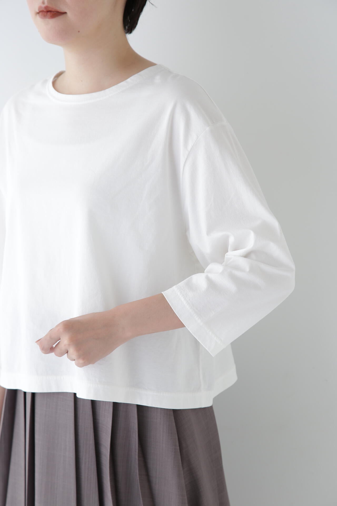 ゆったりシルエットのショート丈プルオーバーです。万能カラーのホワイト1色です。