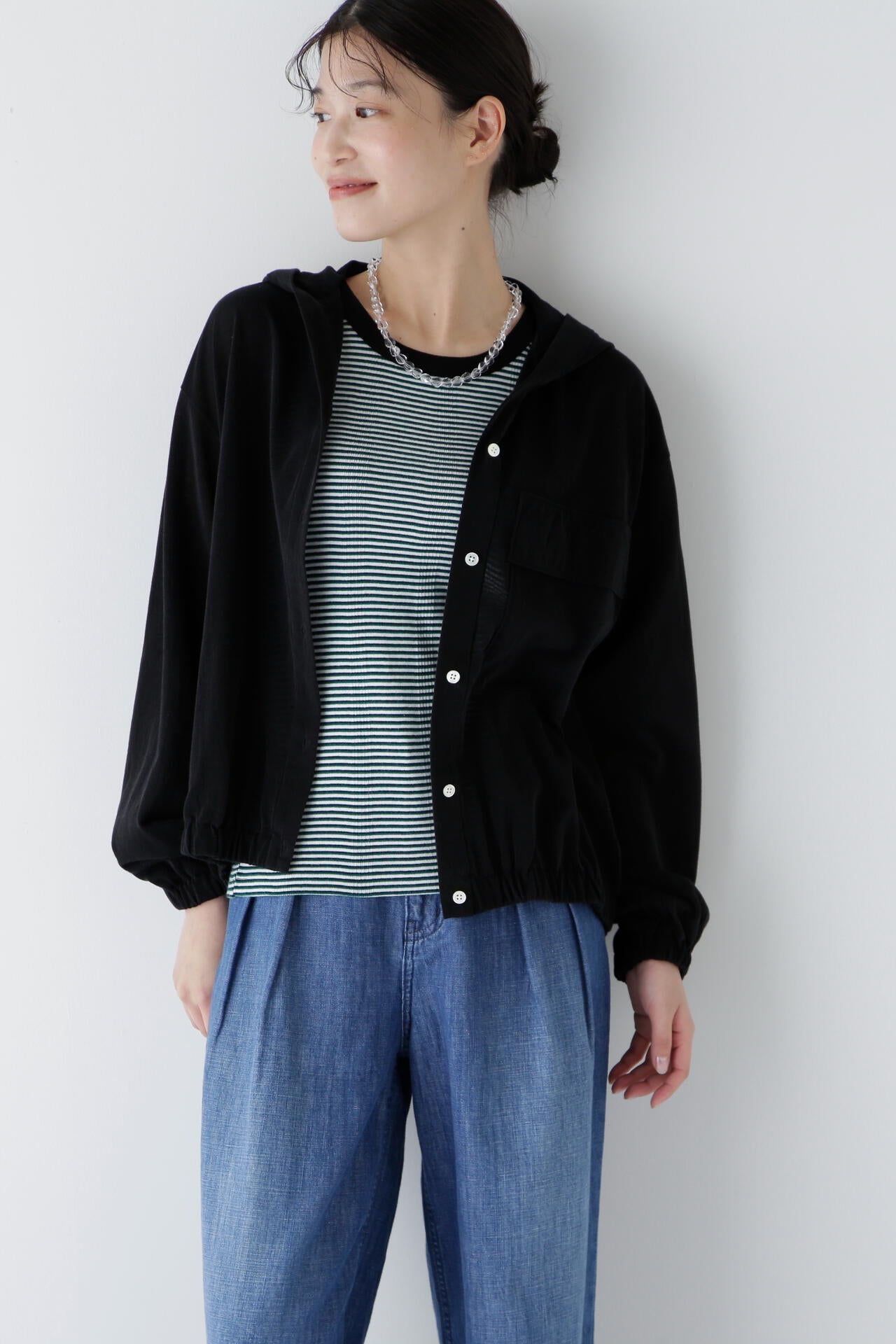 カジュアルな装いにはもちろん、ワンピースなどお出かけシーンに羽織るのもおすすめです。