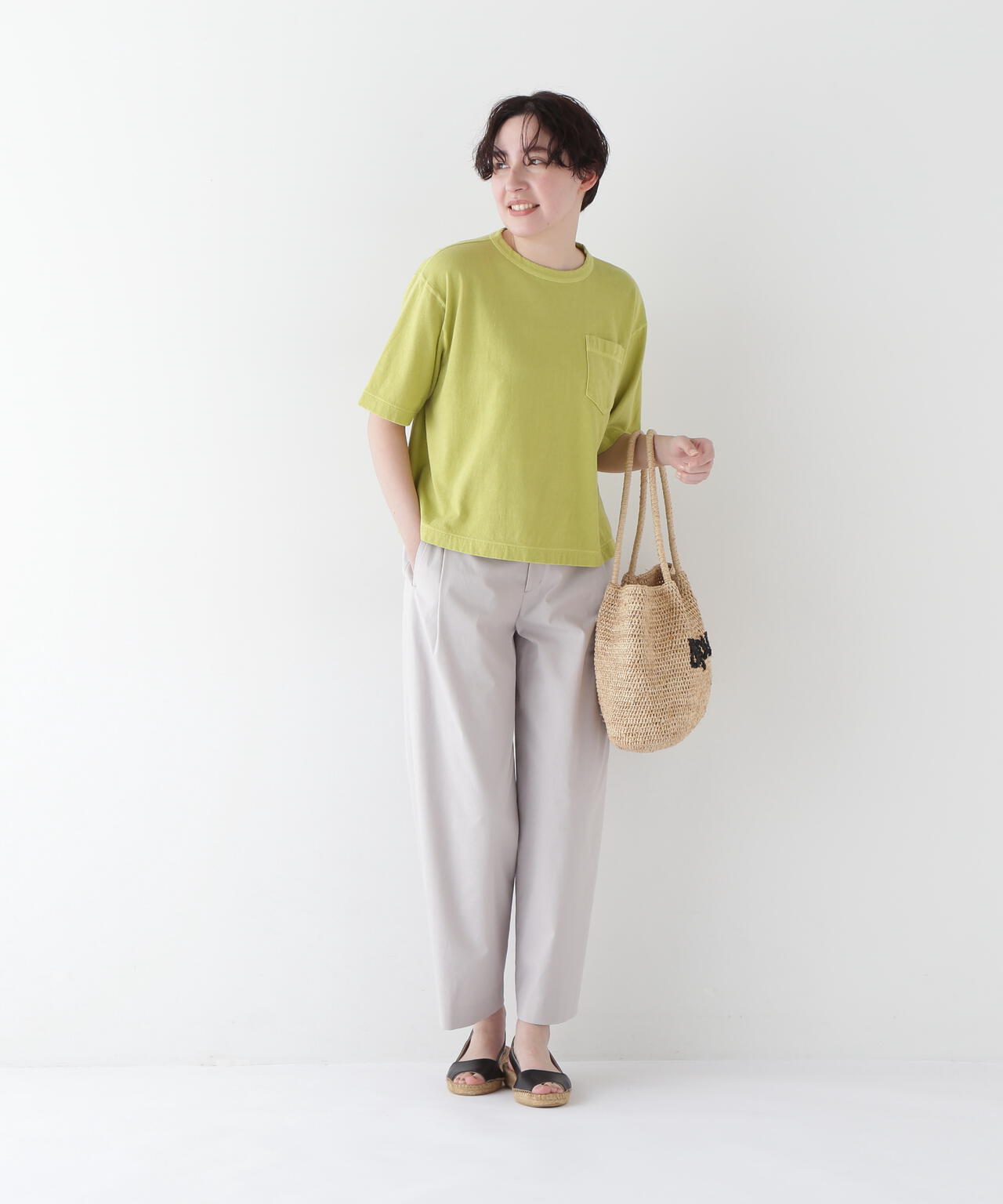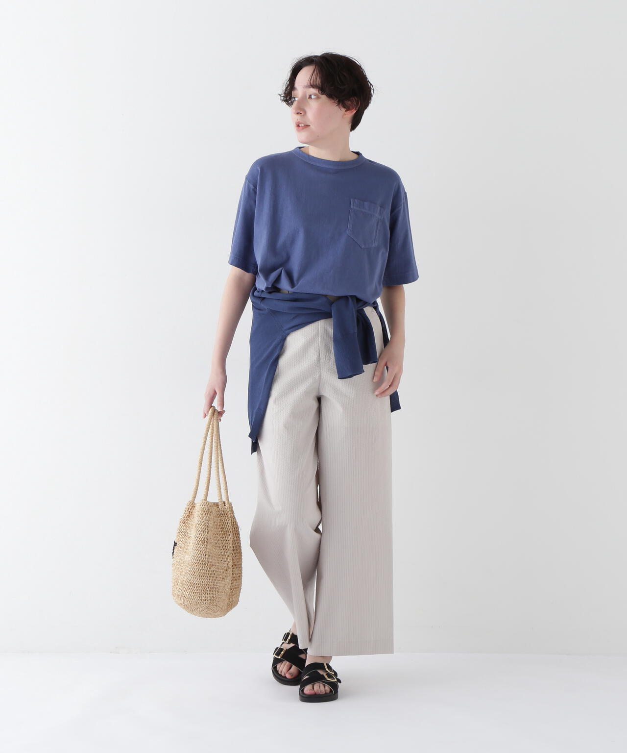 夏小物やワイドパンツと合わせた大人フレンチカジュアルな着こなしがおすすめです。