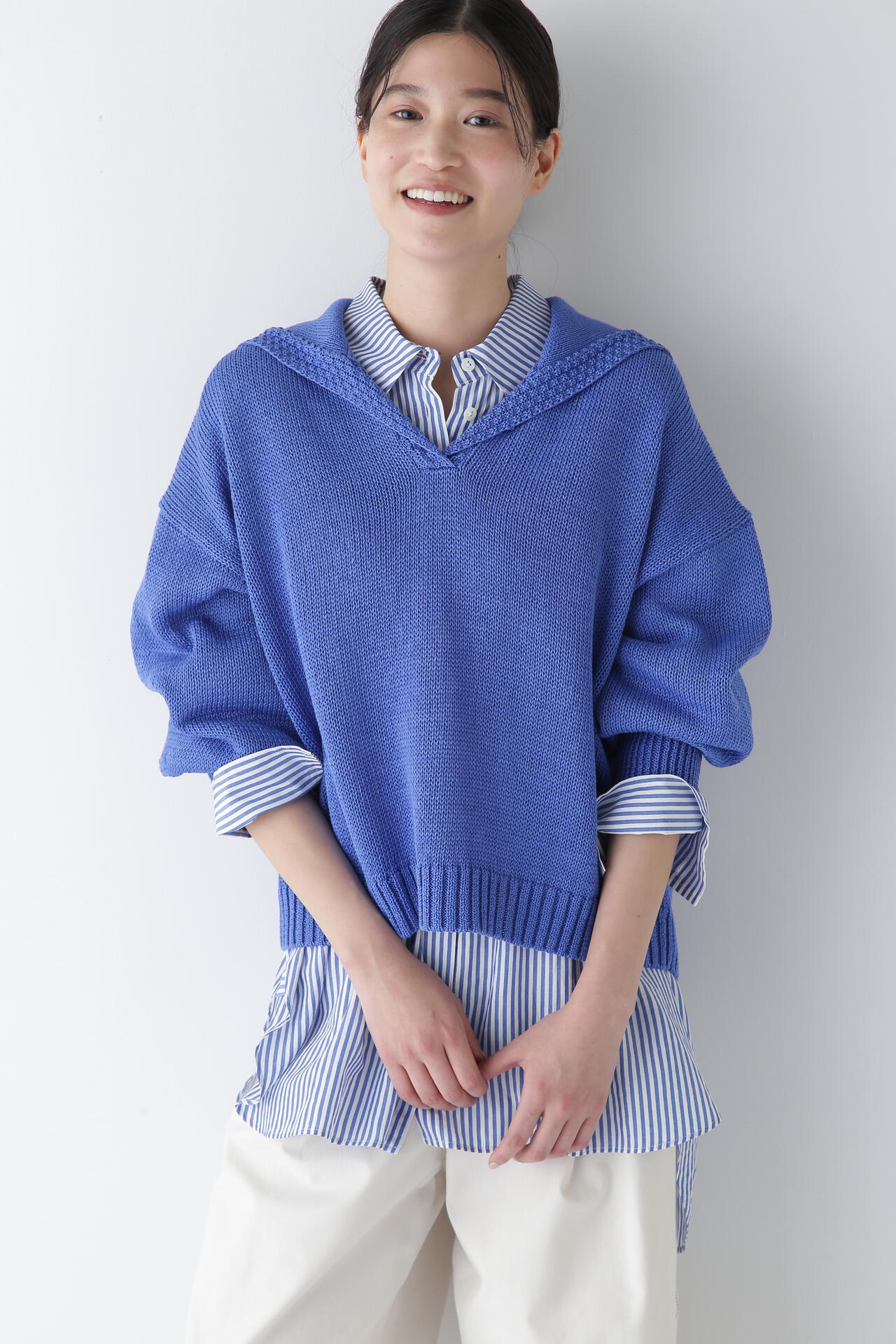 レディライクなセーラーカラーが目を惹く着映えニット。Tシャツなど合わせるインナー次第で着こなしのアレンジを楽しめます.