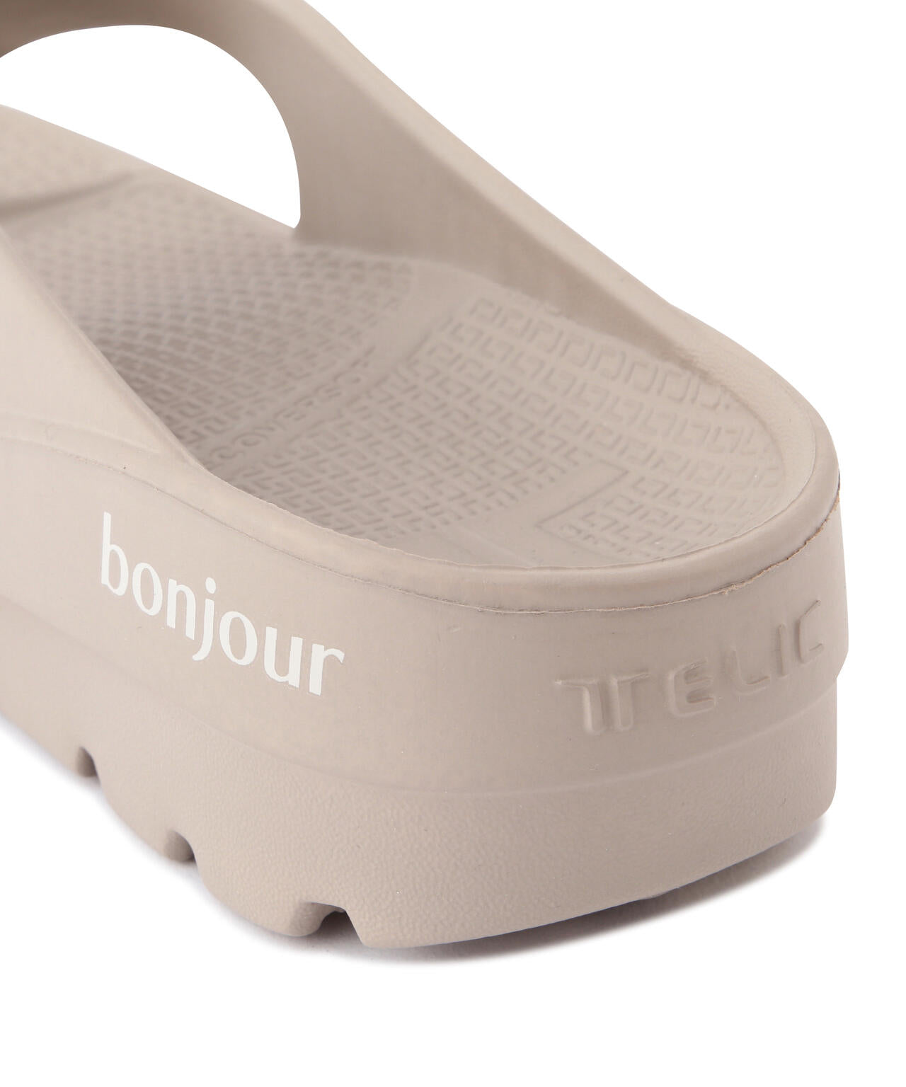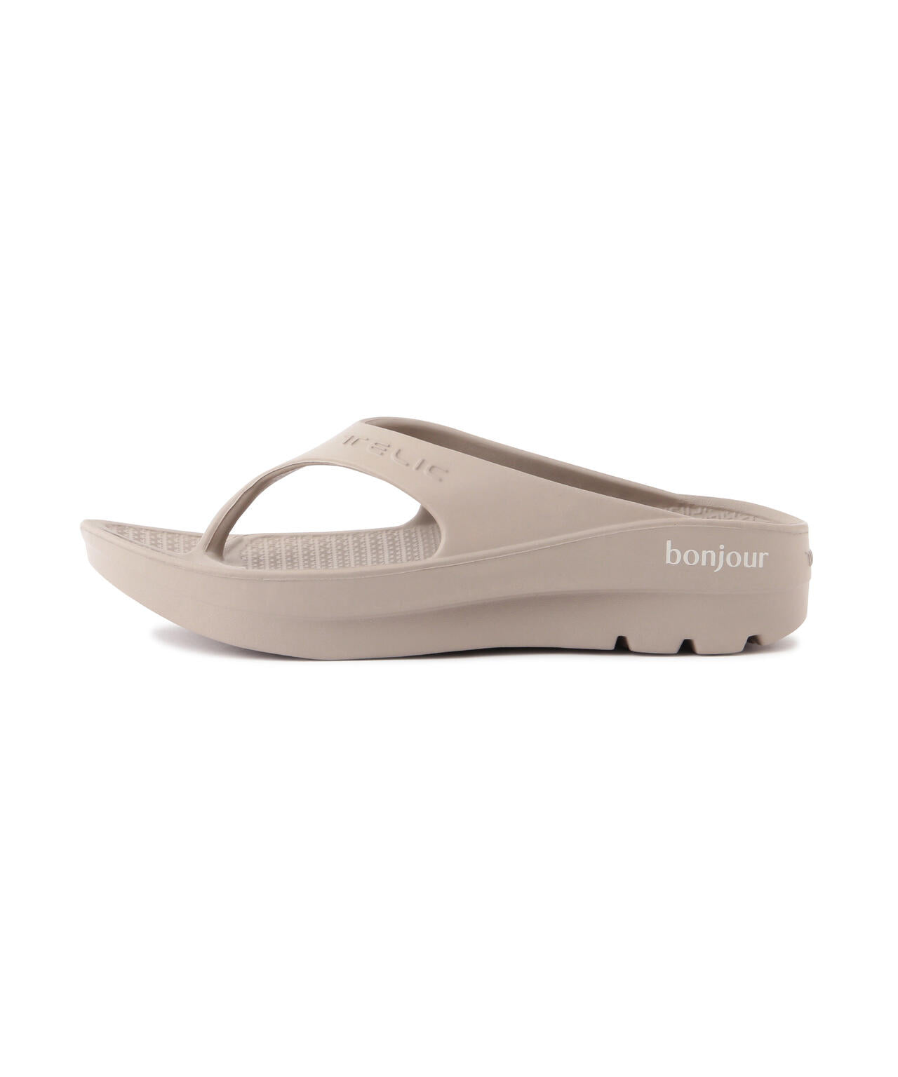 より優しい履き心地を求めて開発されたジャパンオリジナルモデルは、"雲を歩くような履き心地"と評されるほどの快適性を実現。アイコン的モデルのトング型FLIPFLOPをベースに最も柔らかい新素材にアップデートしたモデル。コラボ特別仕様として両足サイドに"merci""bonjour"の遊び心あるプリントを配置したアイテムとなります。
