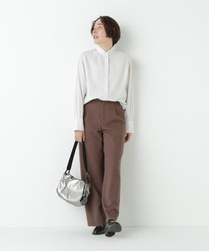 柔らかくしなやかな素材感なので一枚着としてはもちろん、ニットプルオーバーなどのインナーとしても着回せます。オールシーズン着用できるトップスです。