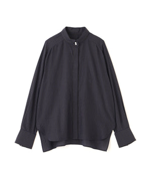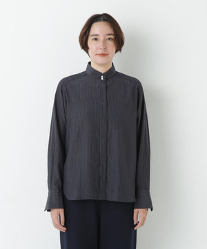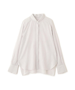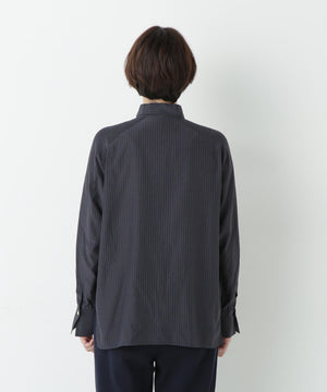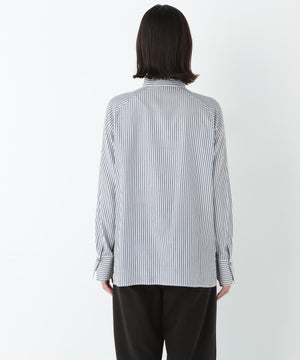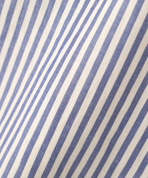 オーガニックコットンのナチュラル感がありながらも、レーヨンの落ち感、アセテートの清涼感を併せ持つストライプ素材です。