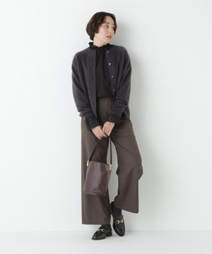 ニットプルオーバーやカーディガンとのレイヤードの際に、襟や袖が可愛いデザインブラウスです。インでもアウトでも合わせやすい丈も嬉しいポイントです。
