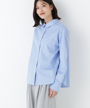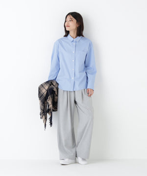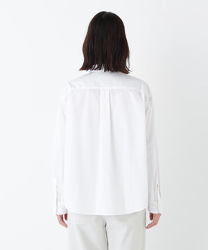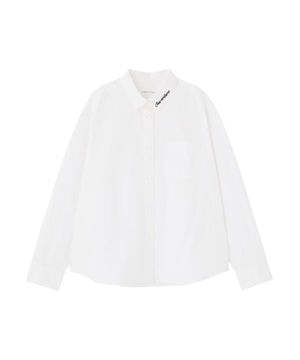 襟元のロゴ刺繍がポイントのタイプライターブラウス