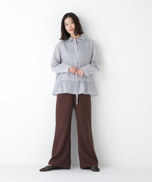 裾がブラウジングできる仕様なので、シルエットのアレンジをお楽しみいただけます。そのままのルーズなシルエット感を活かしたニュアンスのあるパンツスタイルもおすすめです。