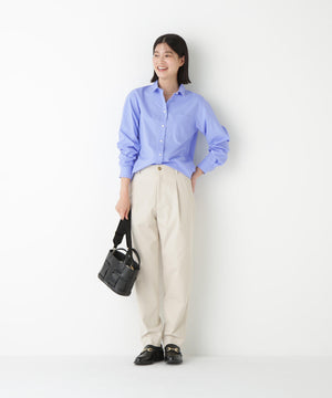 肌触りの良い上品なシャツ生地を使用。白生地は洗濯後のしわが軽減するように後加工を施しています。ブルーはとてもトラッドらしいカラーなのでレイヤードに最適です。