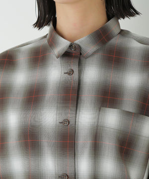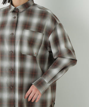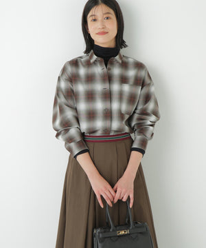 ポリエステルとレーヨンをミックスした、薄手でキレイ目な表情のオンブレーチェックを使用しています。しなやかな落ち感があるのも特徴です。