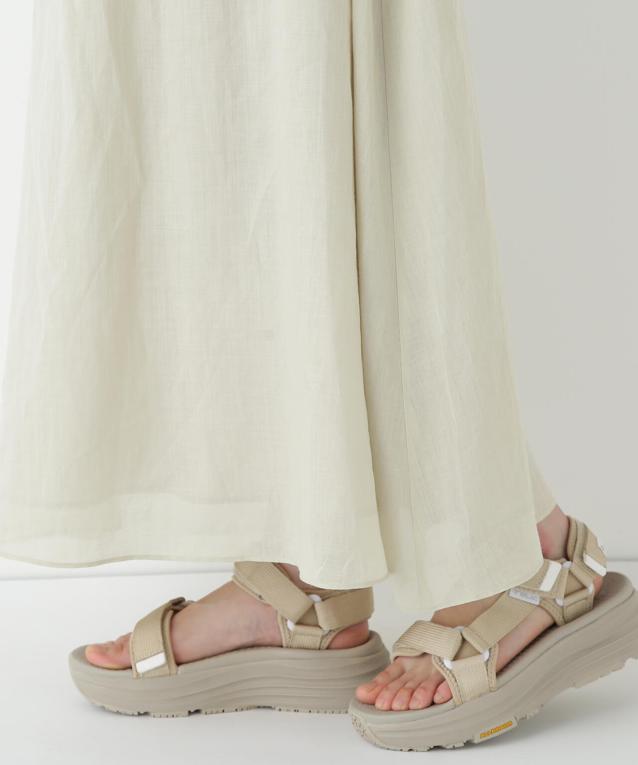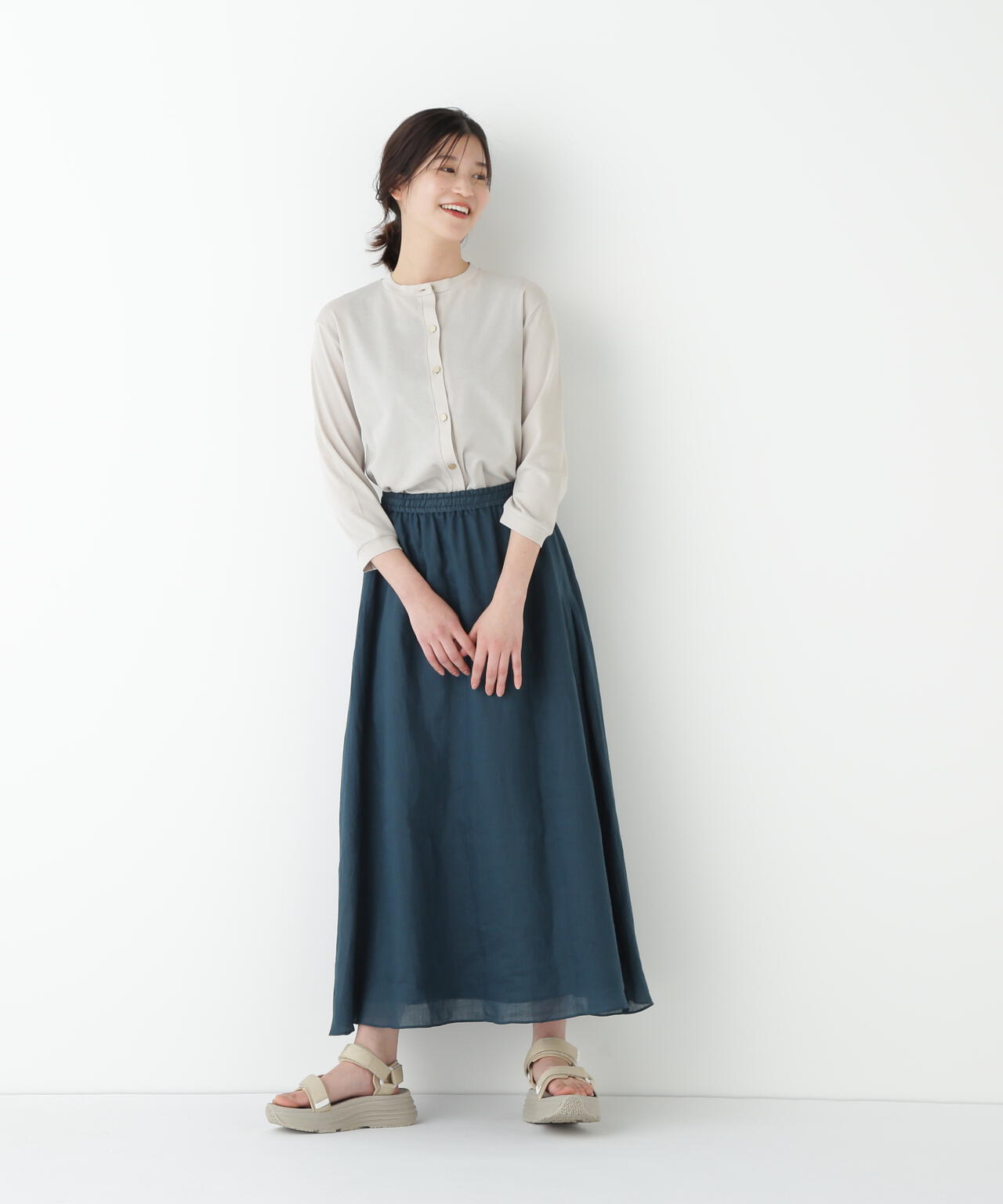 夏の清涼感ある風に揺れるスカートで、サンダルと相性の良いボトムです。