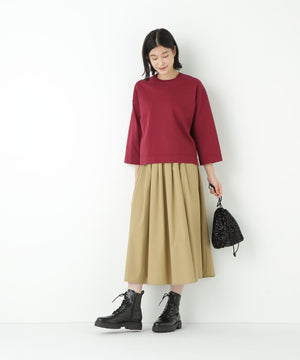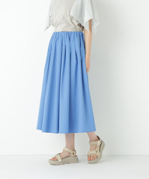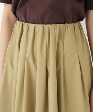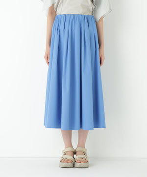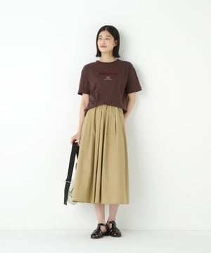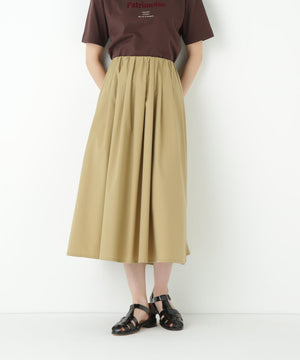 ギャザーのボリューム感が魅力的なスカートなので、トップスはコンパクトにまとめたスタイリングがおすすめです。