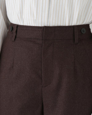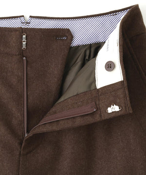 尾州産地で織られた、しなやかで軽いウールライトフラノを使用しています。こちらの素材はウォッシャブル加工を施してあり、ご家庭での手洗いも可能です。トップグレー、トップブラウン、ネイビーの3色展開です。