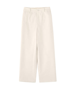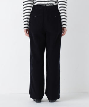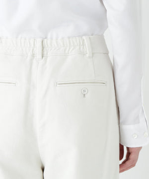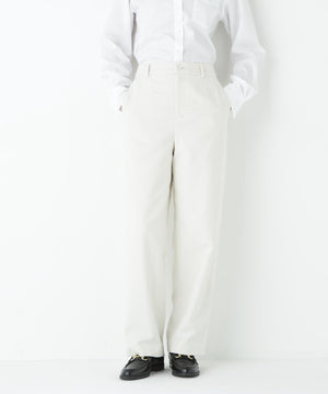 しっかりと起毛をかけた、地柄組織のモールスキン素材を使用。ストレッチも効いているのでストレスフリーな履き心地です。今期はネイビーとエクリュのすっきりとした色展開です。