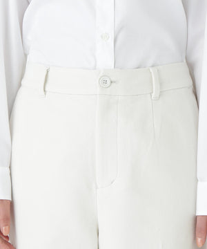 すっきりとしたシルエットのシンプルなデザインのセミワイドパンツです。ダーツで腰回りもすっきりと仕上げてあります。