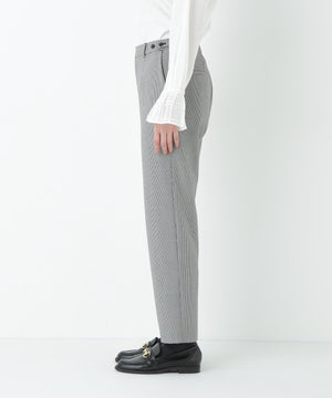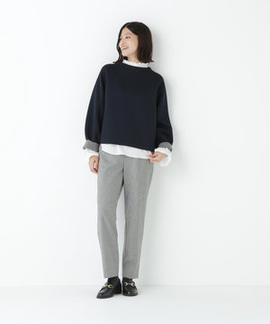 ロング丈トップスやボリューム感のあるニットともバランス良くスタイリングできるパンツです。少し短めの股下設定なので柄ソックスを見せてトラッドに履きこなすのもおすすめです。