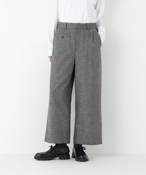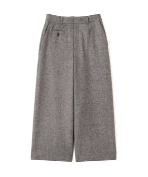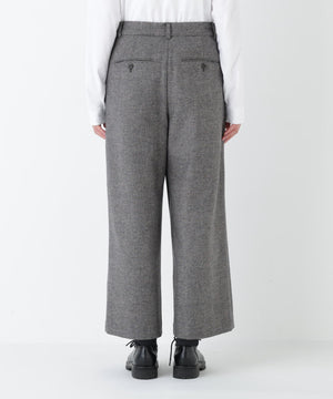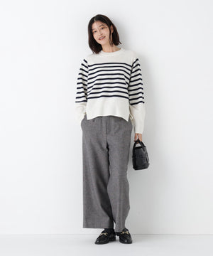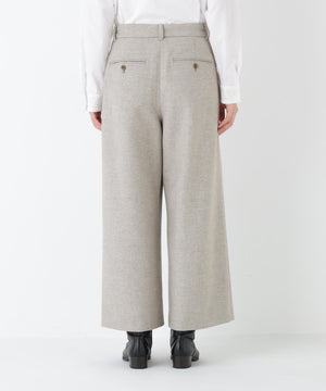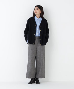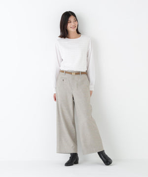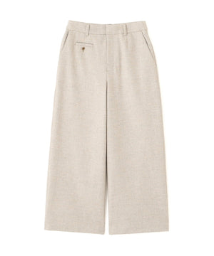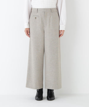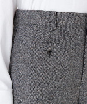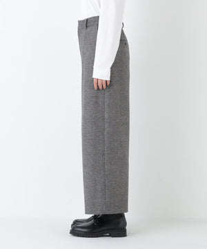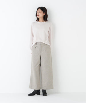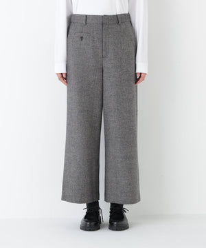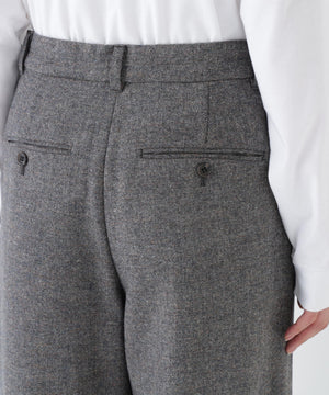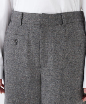 ニュアンスあるメランジカラーのツィード調ウール混ギャバを使用しています。ウーリッチな表情ながらしなやかでソフトな肌触りが特徴です。さらにストレスフリーな2WAYストレッチに加え、ご自宅での手洗いにも対応しています。