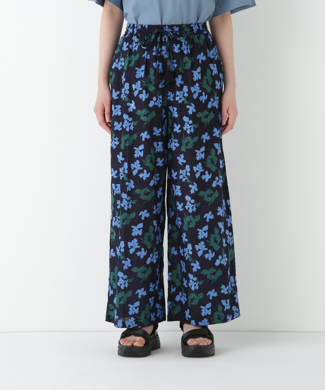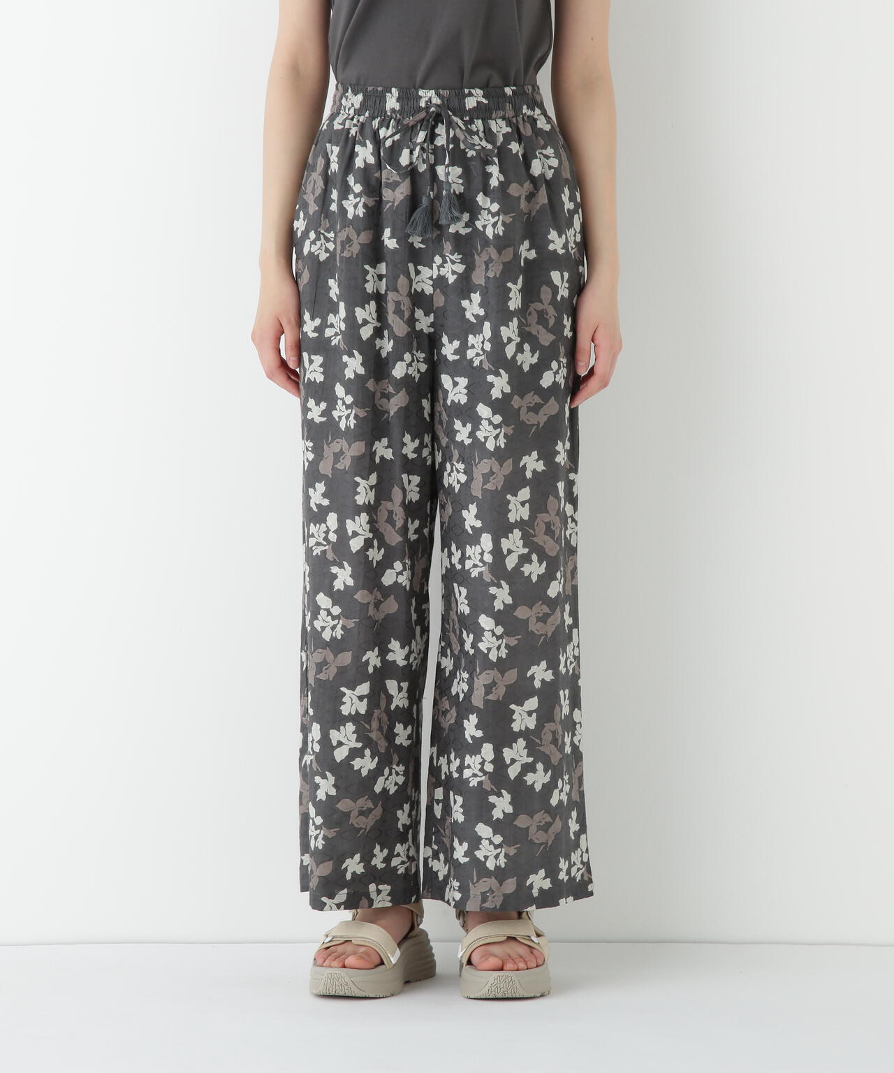 インドドビーリーフプリントイージーセミワイドパンツ