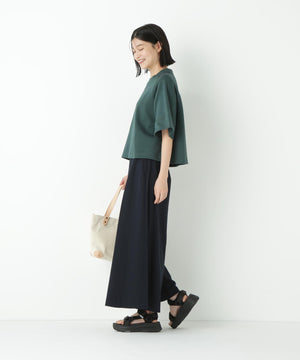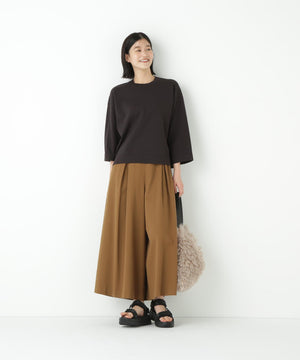 フロントのボックスタックがポイントの素材の落ち感を生かしたスカーチョです。