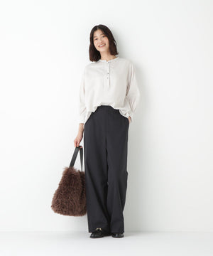 ベーシックカラーのシンプルなデザインなので、トップスを選ばない万能パンツです。Tシャツやスウェットを合わせたカジュアルスタイルから、ブラウスやジャケットを合わせてきちんとしたスタイルまでオンオフで活躍する一着です。