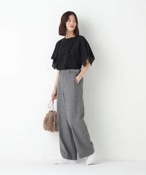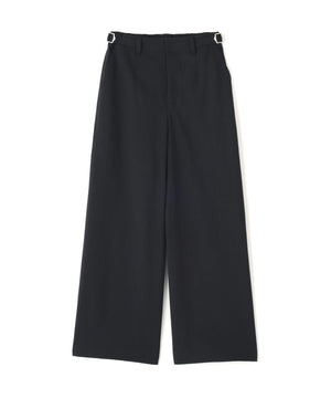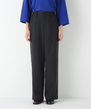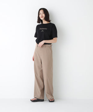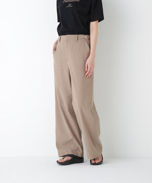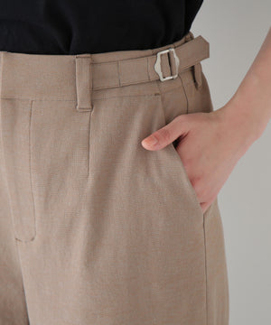 ウエストすっきり続きベルト仕様のセミワイドパンツです。脇のサイズアジャストミニベルトがポイントです。