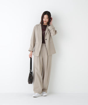 キレイ目素材でカジュアルパンツを仕上げることでオンオフ着まわしやすく、さらに鮮度アップした雰囲気のアイテムです。同素材のテーラードジャケットと合わせてセットアップでスタイリングするのもおすすめです。