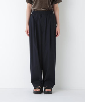 スポーティーなウエストドロスト仕様でリラックス感ある緩いカーブシルエットのワンタックパンツです。