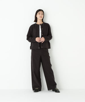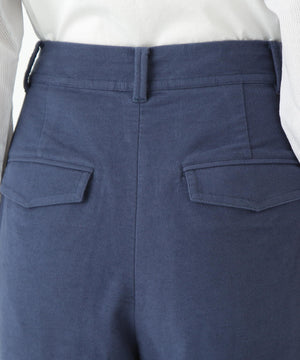 トップスを選ばず着まわせるhuman womanの定番ボトムです。同素材のブルゾンとのセットアップもおすすめです。