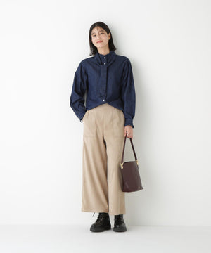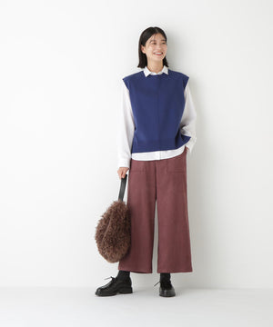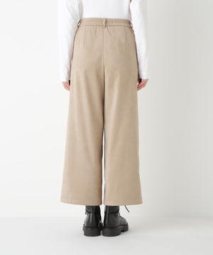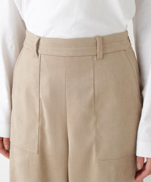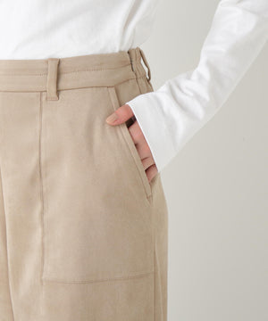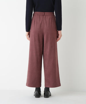 今年らしいスエード調素材を使用したガウチョパンツです。ベイカーディテールでおつくりしています。