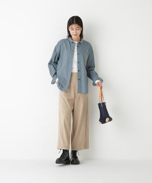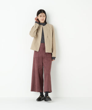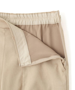 二重組織の安心感ある肉感としなやかな落ち感を併せ持ったフェイクスエードを使用しています。
